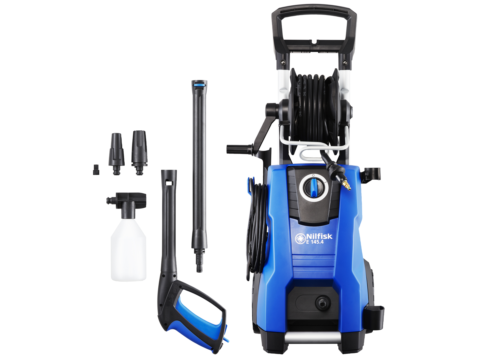 E 145.4-9 X-TRA højtryksrenser med enhåndsbetjent slangerulle. Til effektiv rengøring af en række overflader, herunder sarte områder og hårdere overflader såsom terrasser. Aluminiumspumpe gør højtryksrenseren mere tolerant over for temperaturændringer sammenlignet med andre materialer. Automatisk start/stop-system. 9 mtr. Ultraflex slange, som er hurtig at rulle sammen, samtidig med at risikoen for knæk og revner reduceres. Teleskophåndtag med robuste aluminiumsrør. Gummiophæng sikrer en lavere støj. Praktisk opbevaring af sprøjtepistol, spyd, dyser og skumsprayer på højtryksrenseren. Med Click&Clean-tilslutning kan renseren nemt tilpasses til mere specifik brug med det omfattende udvalg af Nilfisk-tilbehør. Leveres inkl. skumsprayer med dunk, Gentle PR-dyse med trykregulering, Rough-dyse og rensenål til dyser.