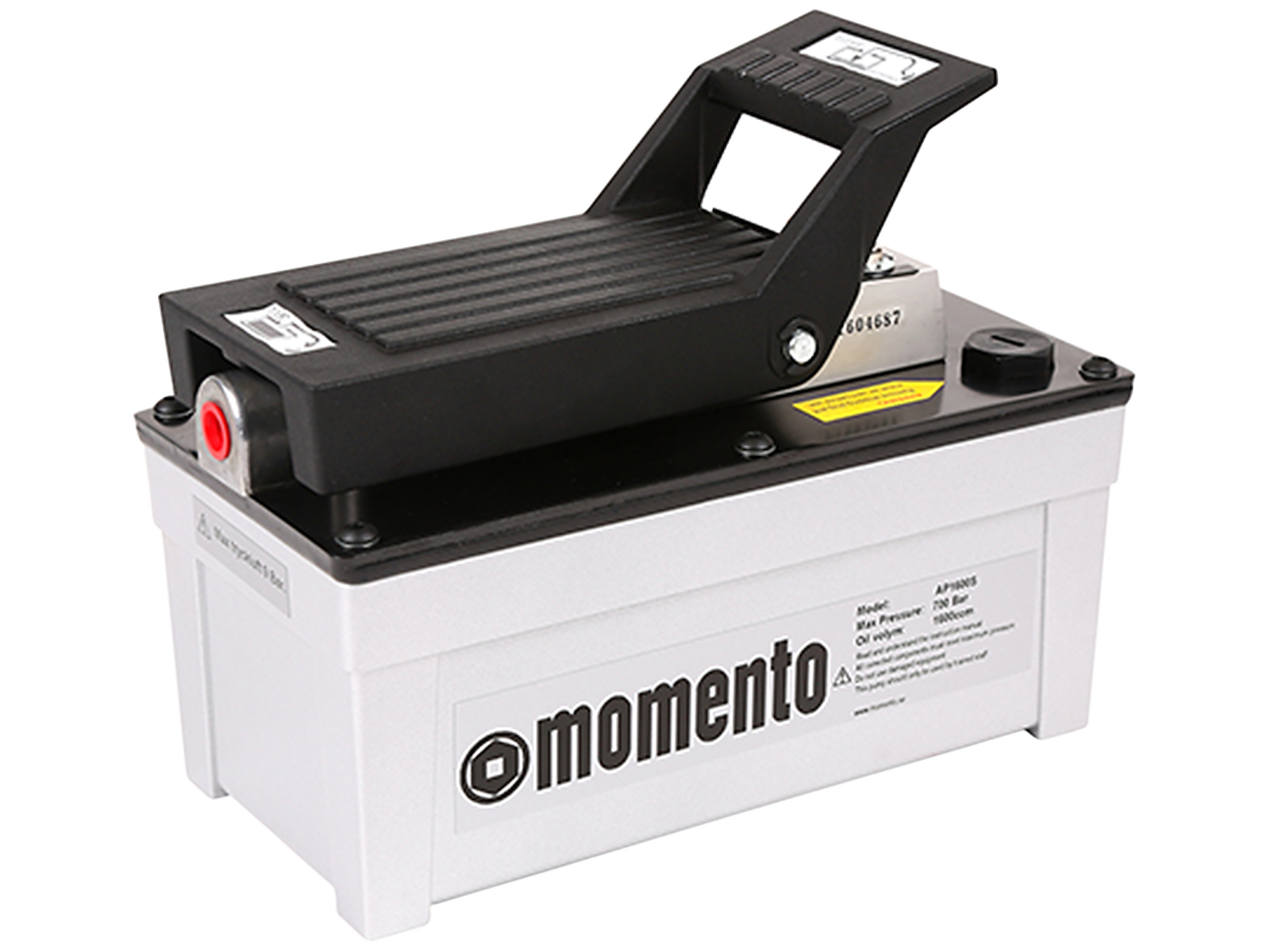 Momento luftdreven 670 bar hydraulikpumpe AP1600S-S er med indbygget luftmotor. 2-trins pumpe, der sikrer hurtig fremførsel af cylinderens stempel. 1,6 ltr olie. Der medfølger slange og koblinger.