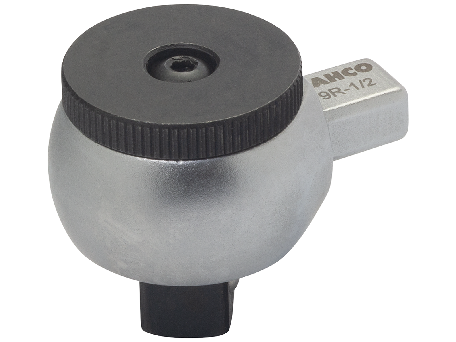 Rundt skraldehoved med 45 tænder, omskifter og rektangulær adapter. Fastgøres til momentnøglen med en fjederbelastet stift. Fremstillet af højtlegeret stål.