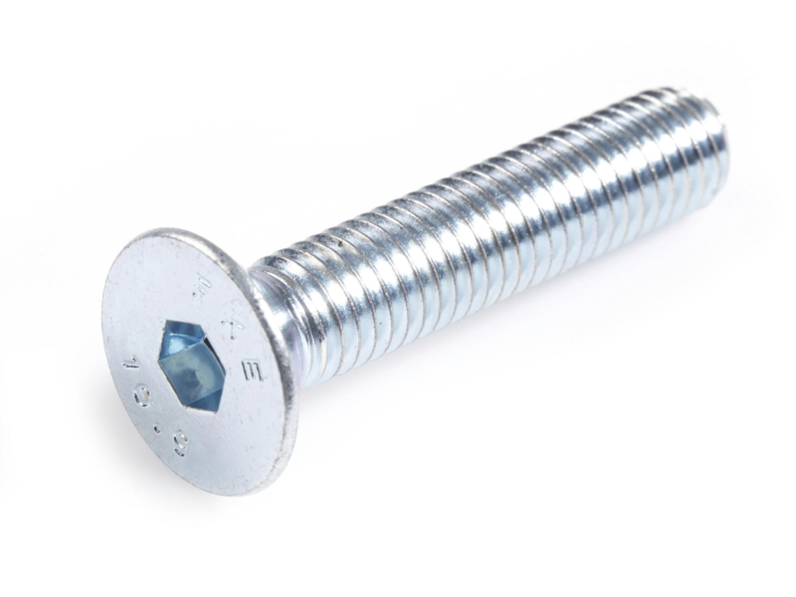 Skrue med indvendigt sekskantet greb og forsænket hoved. Metrisk. Fås i flere dimensioner og længder.