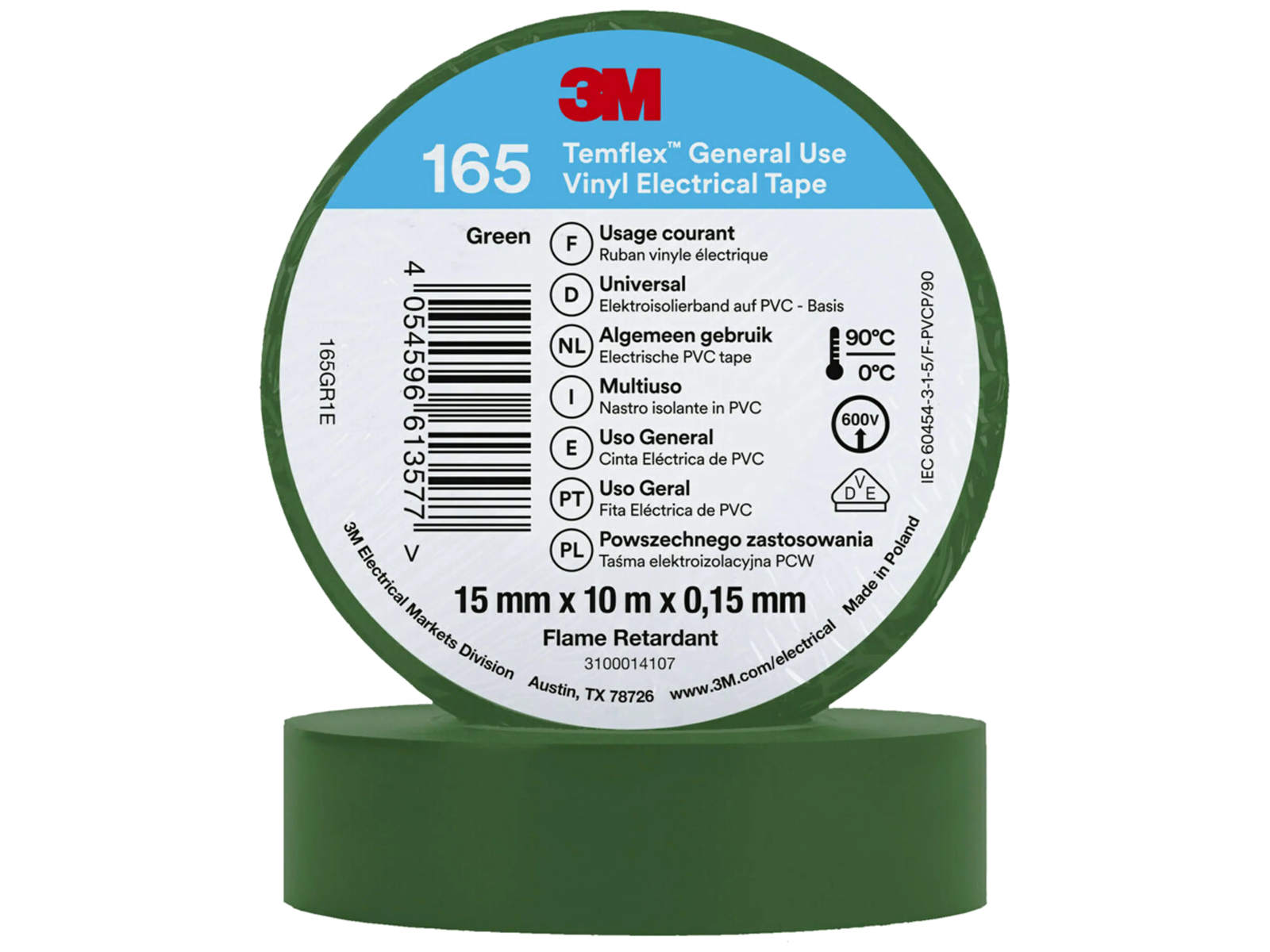 3M Temflex 1500 eltape er en 15 mm bred PVC isolertape i god kvalitet. Anvendes til isolering af kabelsamlinger og reparationer, indendørs som udendørs. Modstår slid, fugt alkalier, syre og vekslende vejr. Ruller á 10 meter. Fås i flere farver.
