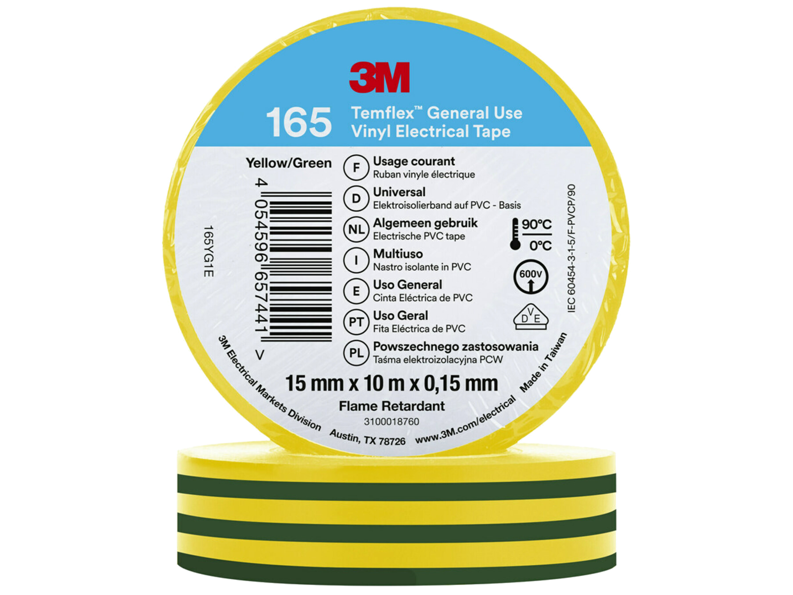3M Temflex 1500 eltape er en 15 mm bred PVC isolertape i god kvalitet. Anvendes til isolering af kabelsamlinger og reparationer, indendørs som udendørs. Modstår slid, fugt alkalier, syre og vekslende vejr. Ruller á 10 meter.