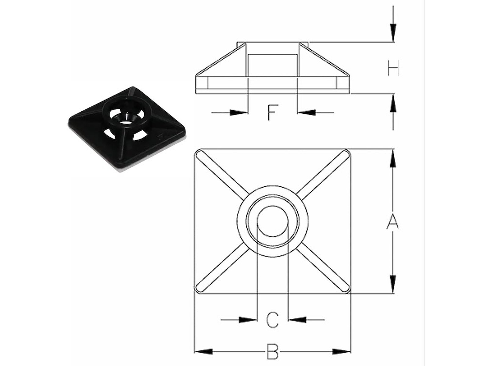 Kabelbinder monteringsplade sort 19x19mm