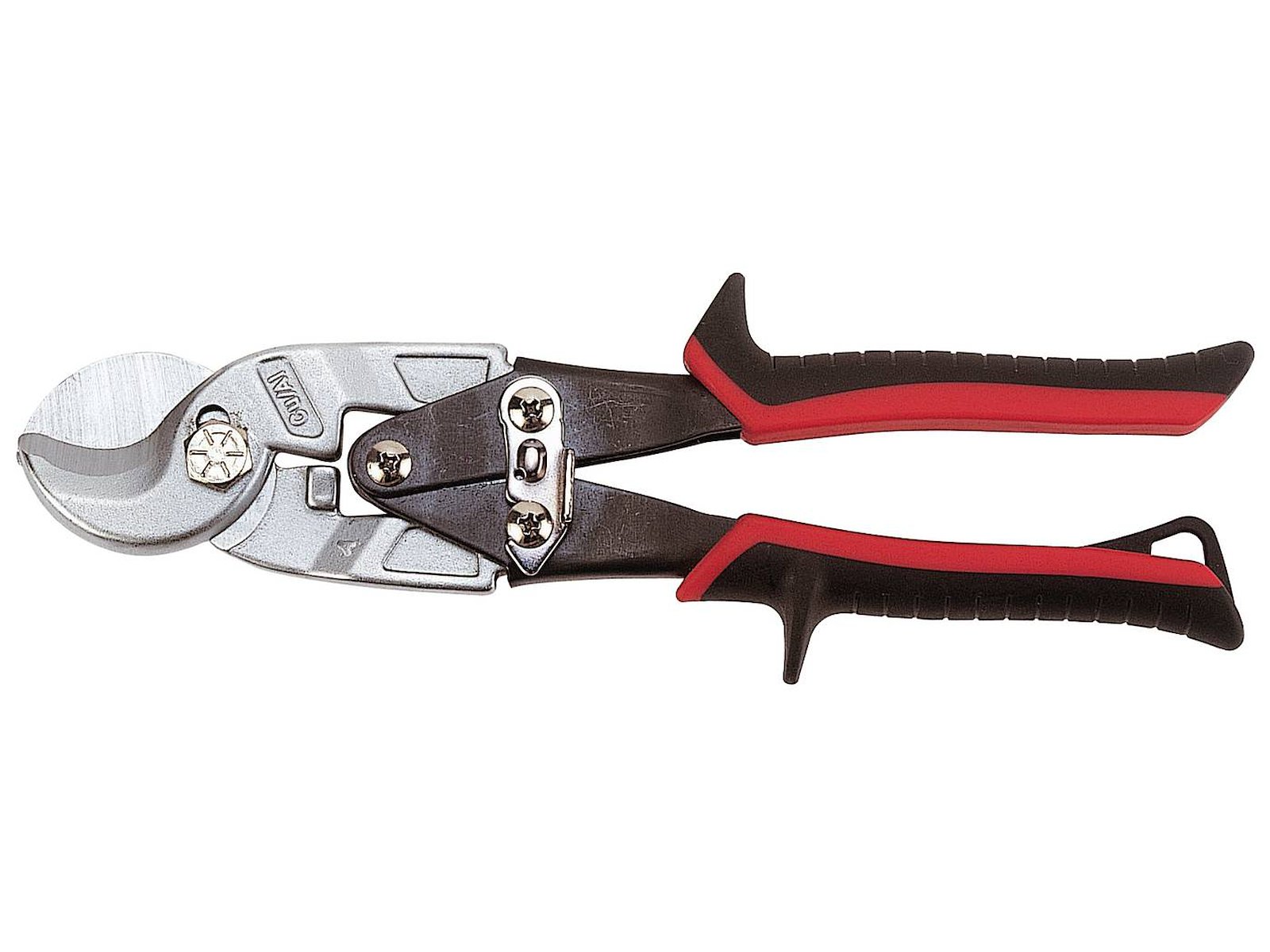 Sænksmedet. Skær af krommolybdænstål for lang levetid. Med udveksling for større klippekapacitet. Klipper kobber- og aluminiumkabler op til 12 mm. Tokomponenthåndtag. Låsearm.