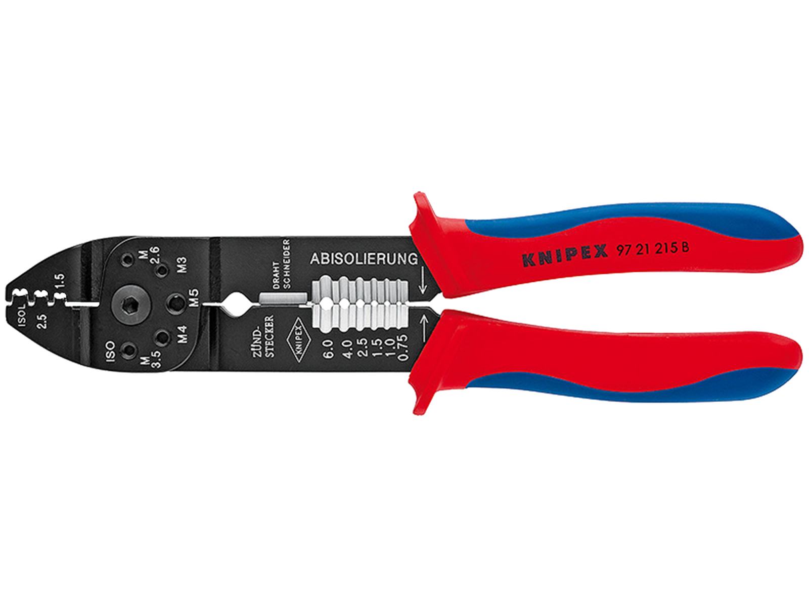 • Til at skære kabler, afisolere tråde og crimpe isolerede og uisolerede kabelsko og stikforbindere og åbne stikforbindere. Med gevindhuller til afskæring af Cu- eller Ms-gevindtapper M2,6 / M3 / M3,5 / M4 og M5. Skruet led for høj stabilitet og ensartet løb. Specialstål, særdeles solidt.