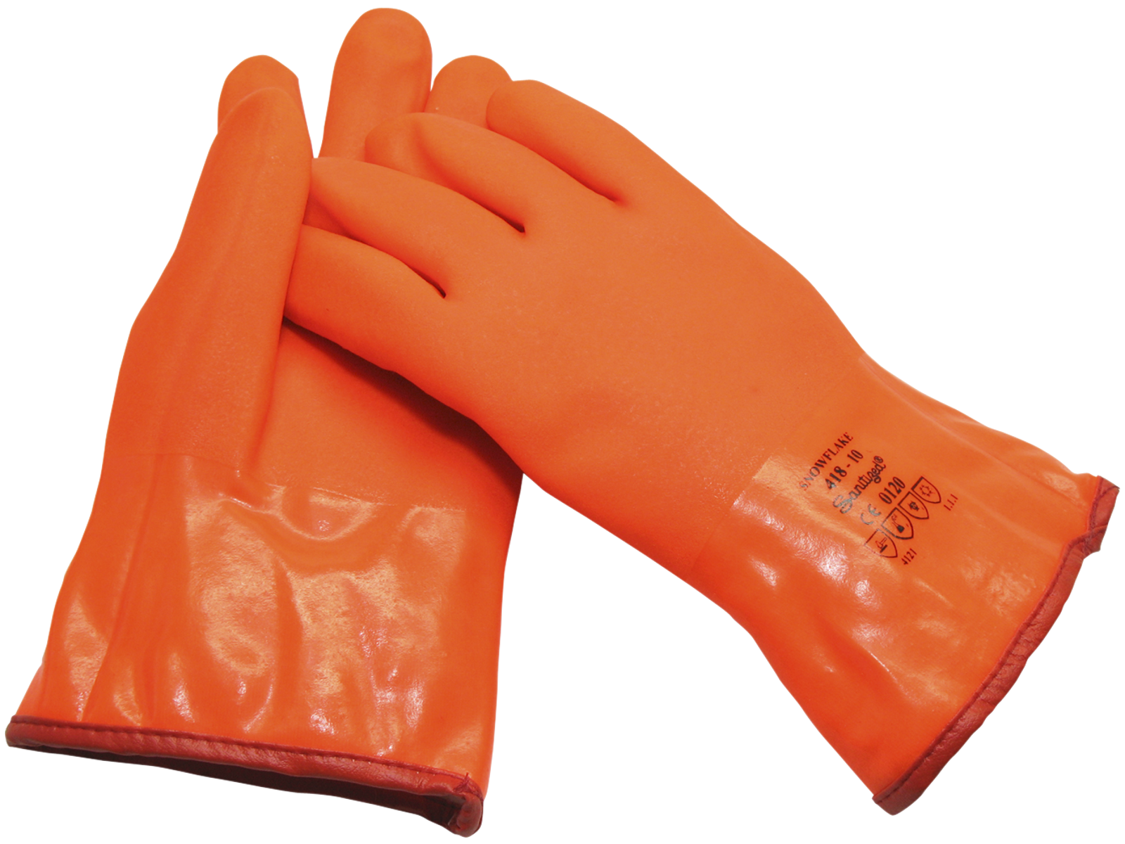 Termoforet, syet vinterhandske med slip-on krave. Tyk bomuldshandske med glat overflade og heldyppet PVC-belægning. Ideel til koldt arbejde ved transport, landbrug, vandværker og i entreprenør-regi. Godkendelser: EN 388:2016, EN 511:2006, EN ISO 374-1:2016/type A, EN ISO 374-5:2016 og EN 420:2003+A1:2009. Kategori III.