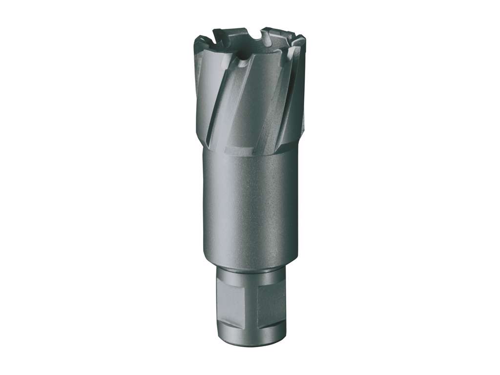 • Kernebor med HM-skær og Weldonskaft ø12 mm med 50 mm skæredybde. Velegnet til boring i jernbaneskinner, hardox og weldox 400, stål, stålgods, højkromlegeret stål så som V2A og V4A og højere legeret stål. Husk altid udkasterstift og vær opmærksom på skærehastighed og brug af kølemiddel. Fås i dimensionerne 12-50 mm.