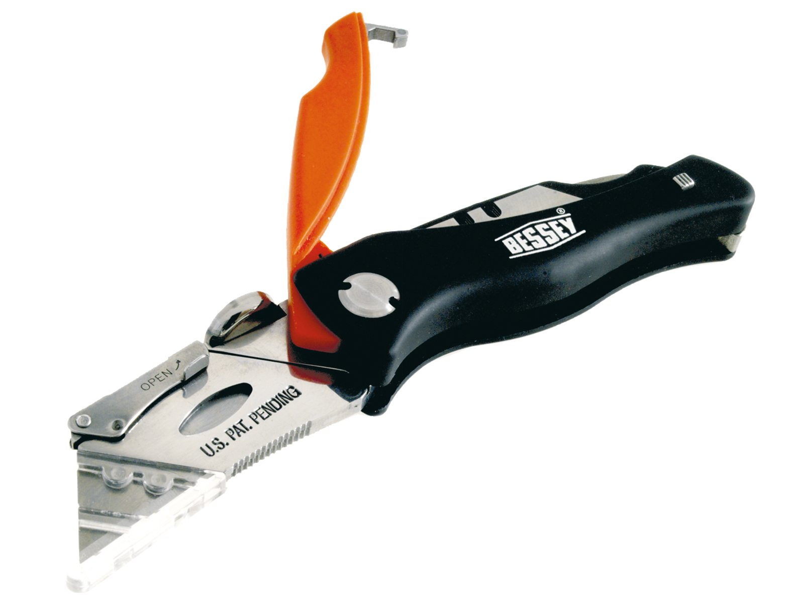 Arbejdskniv med let kunststofgreb og bælteclip. Hurtig udskiftning af klinge.