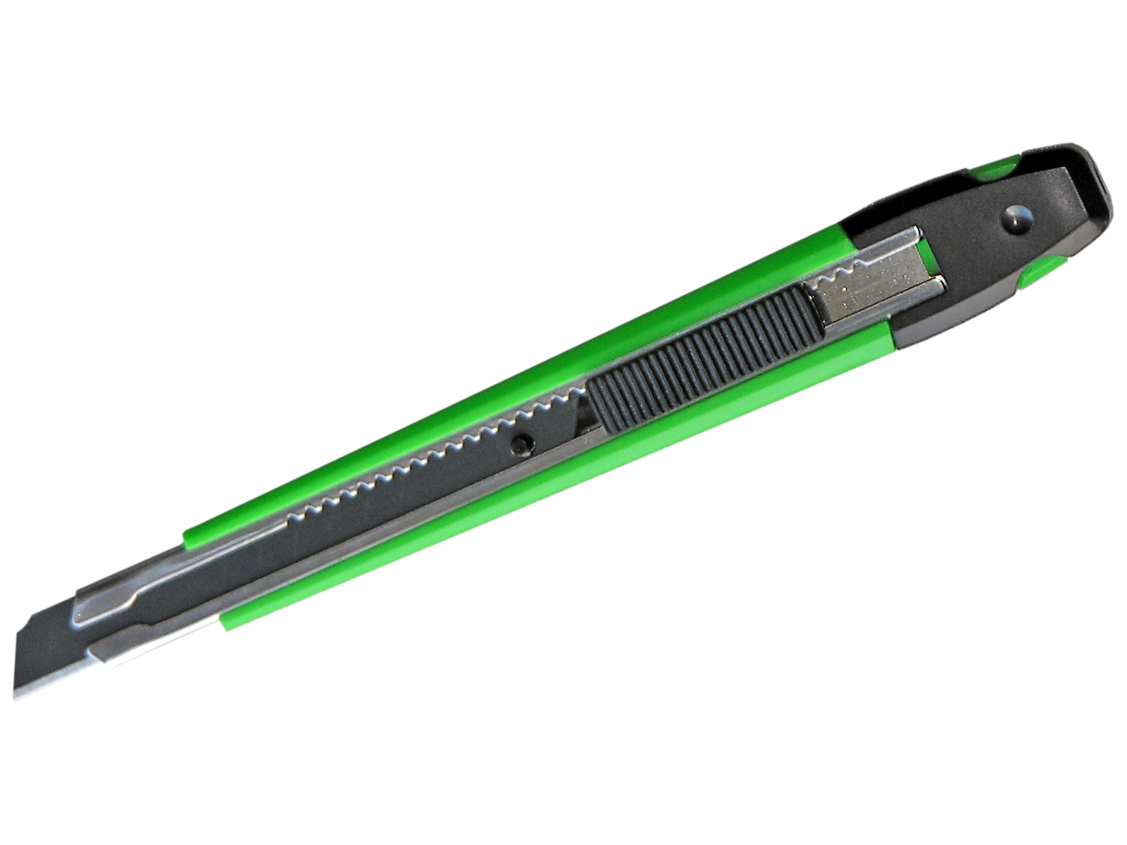 Hobbykniv med ultraskarpe sorte knæk-af-blade. Universalkniv til læder, gulvtæppe, karton etc. Med skydelås, som automatisk fastholder klingen. Magasin med 2 stk. ekstra knivblade. Fås i flere varianter.