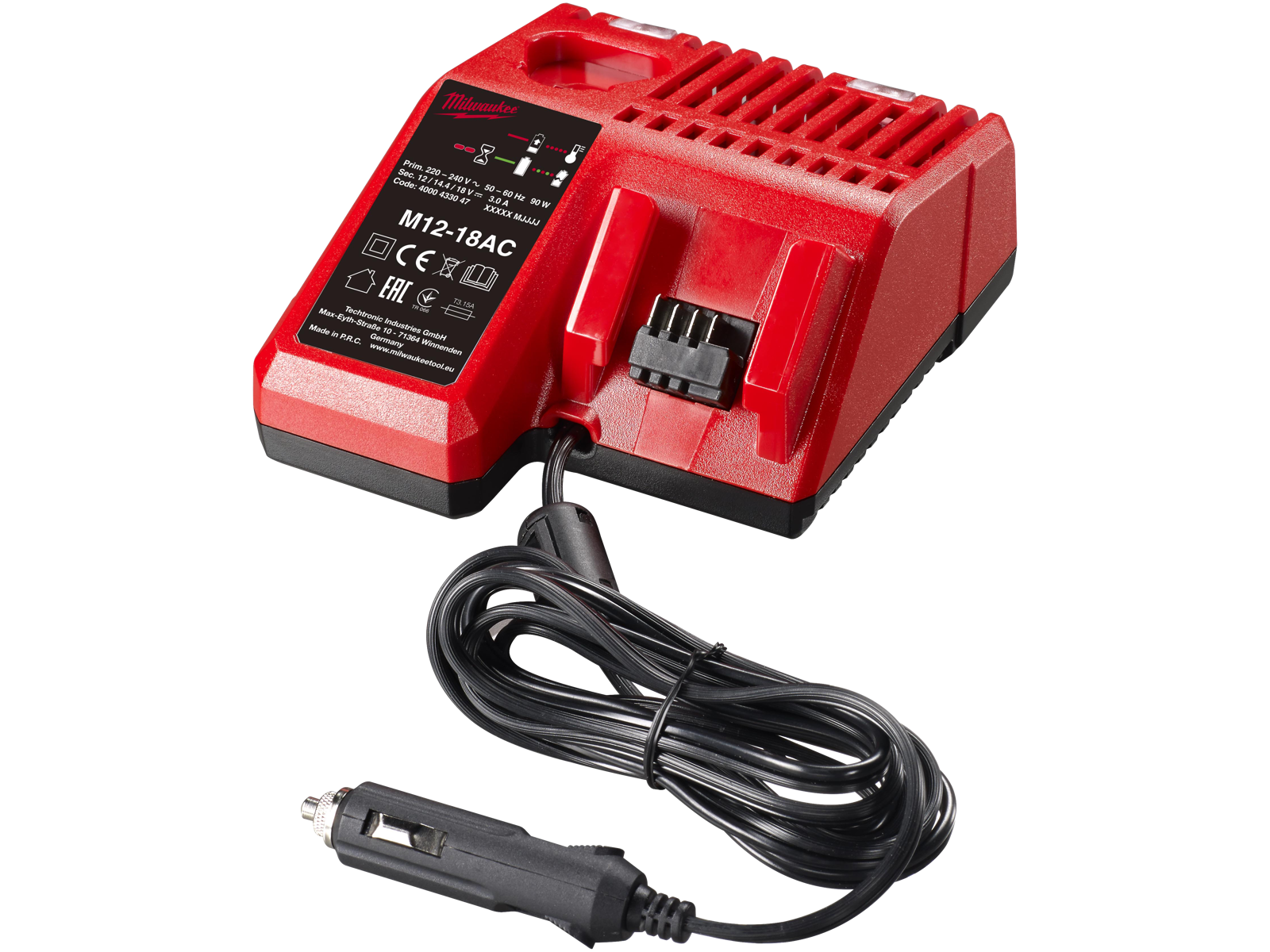 Billader til alle M12 og M18 Redlithium batterier. Perfekt løsning til at lade batterierne i bilen i et alm. 12 V/24 V-stik. Sekvensladning - første batteri i lader bliver først opladet. M12 Redlithium ladetider: 2,0/3,0/4,0/6,0 Ah batterier lades på maks. 40/70/80/90 min. M18 Redlithium ladetider: 2,0/4,0/5,0/6,0/9,0 Ah batterier lades på maks. 40/80/100/124/180 min. Batteriindikator viser status på batterierne.