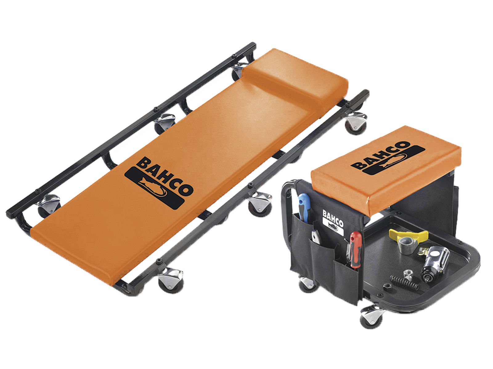 Sæt bestående af liggebræt og montørstol. Liggebræt: Lav højde på kun 135 mm. Kapacitet 116 kg. Polstret i hele brættets længde og bredde. Forhøjet ved hovedende for bedre komfort. Monteret med 6 stk. PP hjul med en diameter på 60 mm og en bredde på 10 mm. Hjulene kan alle drejes 360°. Montørstol: Kapacitet 100 kg. Fast højde. Forsynet lommer i begge sider samt en bakke under sædet. Polstret for mere komfort.Monteret med 4 stk. PP hjul med en diameter på 60 mm og en bredde på 10 mm. Hjulene kan alle drejes 360°.