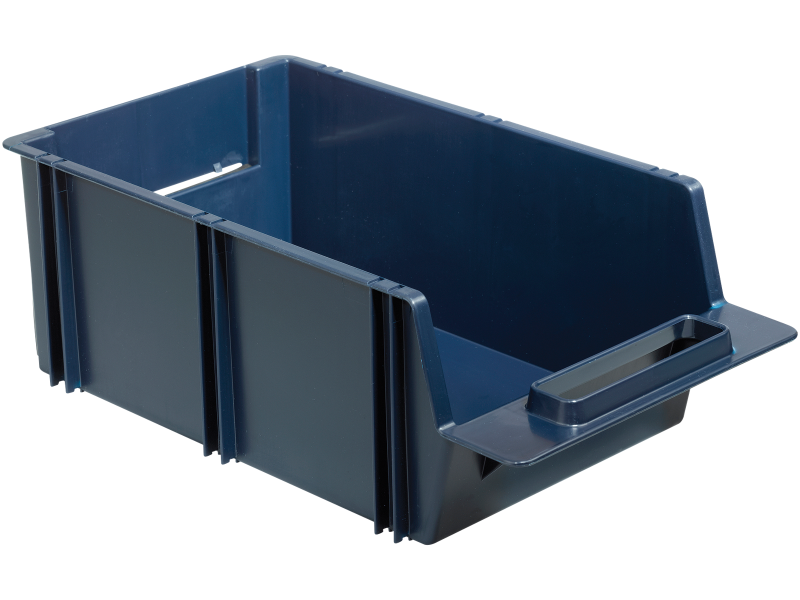 Reolkasse til 310 mm hylde. Med bårehåndtag i bagkanten. Der skal være 6 hullers afstand mellem hylderne. Fremstillet af polypropylen (PP).