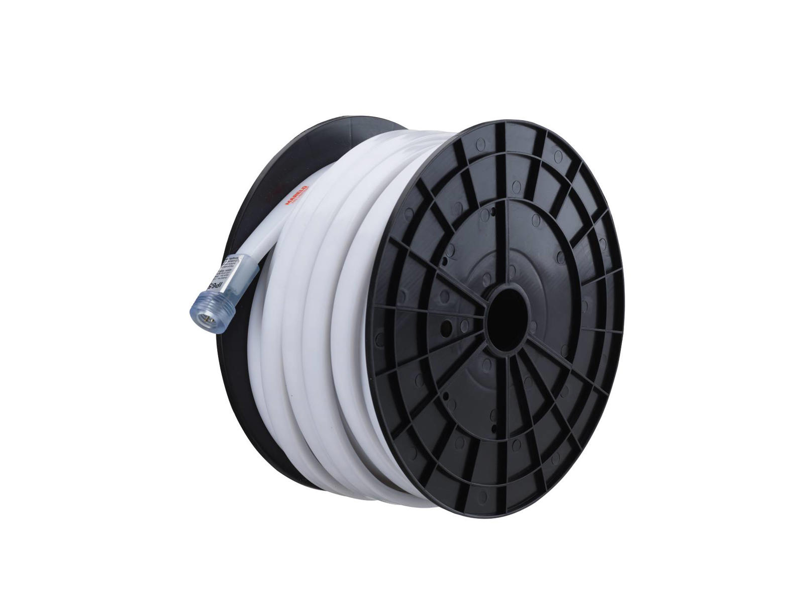 LED-strip Sunlit frostet med 180 lysdioder/meter. Selve strippen beskyttes af en frostet belægning, som ikke blænder så meget som andre strips. Nem at montere, enten ved hjælp af strips eller monteringskroge. Velegnet til anvendelse som generel belysning til oplysning af farlige områder, såsom elevatorskaks, trapperum eller platforme. Strippen kan dæmpes efter behov for at opnå den rette lysmængde. Produktet er IP 65, hvilket betyder, at det kan bruges både uden- og indendørs. Strippen skal rulles ud i sin fulde længde, inden man tænder den, da der ellers er risiko for, at slangen smelter.