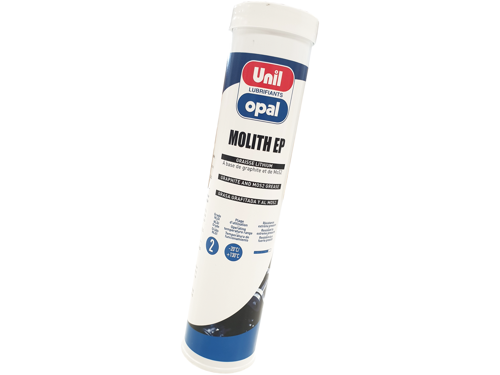 Molith Moly EP er en højkvalitets-smørefedt med molybdendisulfid (MoS2 ) og grafit. Molith er især velegnet og tilpasset til de dele af maskiner som er udsat for kraftige vibrationer og høj belastning. Kan med fordel anvendes til smøring af samlinger, forbindelser, knaster, lejer, ruller osv. Molith EP finder anvendelse i mange industrier, men er især velegnet til smøring af entreprenørmaskiner, hvor smøringen ofte kræver en fedt som kan modstå vejrlig og høje belastninger. Nemt at påføre med fedtsprøjte. Meget stor resistens for vand og vejrforhold.