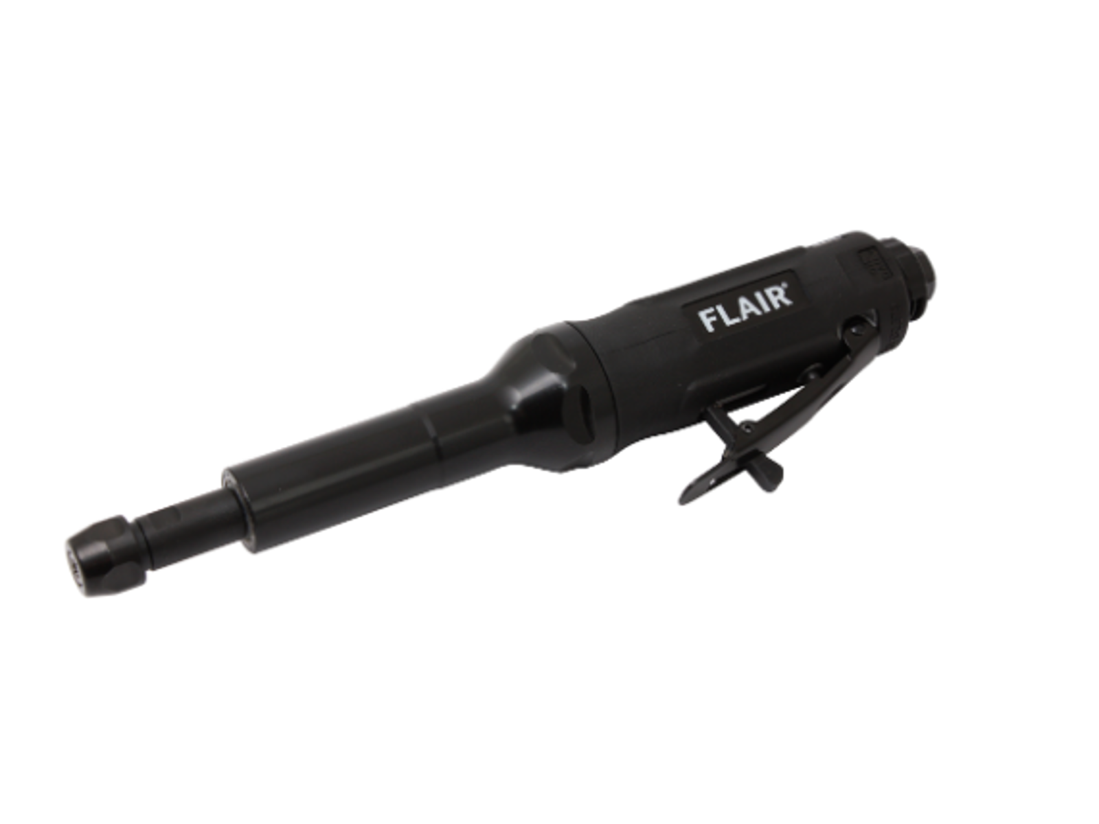 FLAIR lynsliber med forlænget aksel, 6 mm opspænding og bagudrettet luftafgang. Blødt ergonomisk greb for høj komfort, lavt lydniveau og indbygget omdrejningsregulator. Stærk.