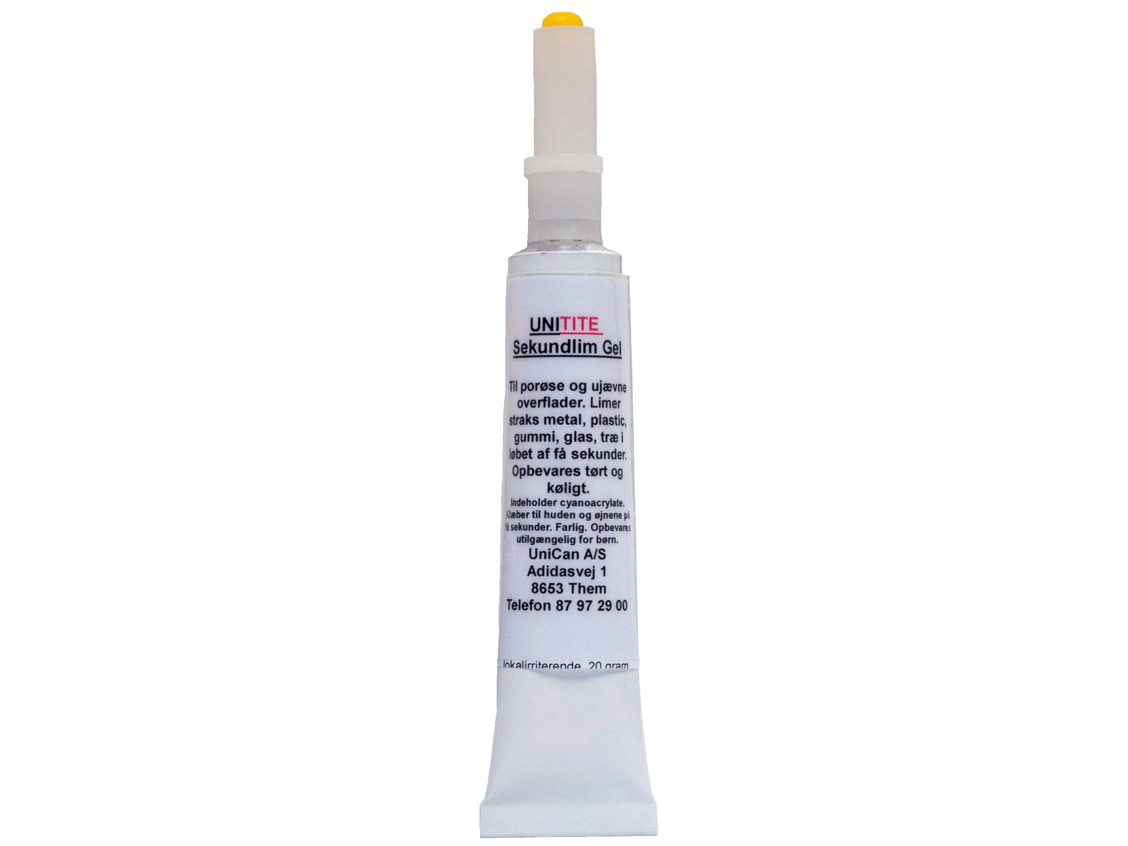 Unitite Sekundlime er hurtighærdende cyanoacrylater, der med succes kan anvendes til limning på langt de fleste plasttyper samt gummi, træ, stof, læder, karton, kunststoffer, keramik, metaldele m.m. Hærdningen af denne limtype sker meget hurtigt når de påførte emner presses sammen. Se-Gel sekundlim er meget velegnet til vertikal limning pga. dens gel-konsistens, hvilket bevirker, at man forhindrer risikoen for at den drypper af. Bedste resultat opnås, hvis emnerne, der ønskes limet er fuldstændig rene og fedtfrie. Til afrensning af emner kan Unican C-1000 Power Cleaner kraftigt anbefales.