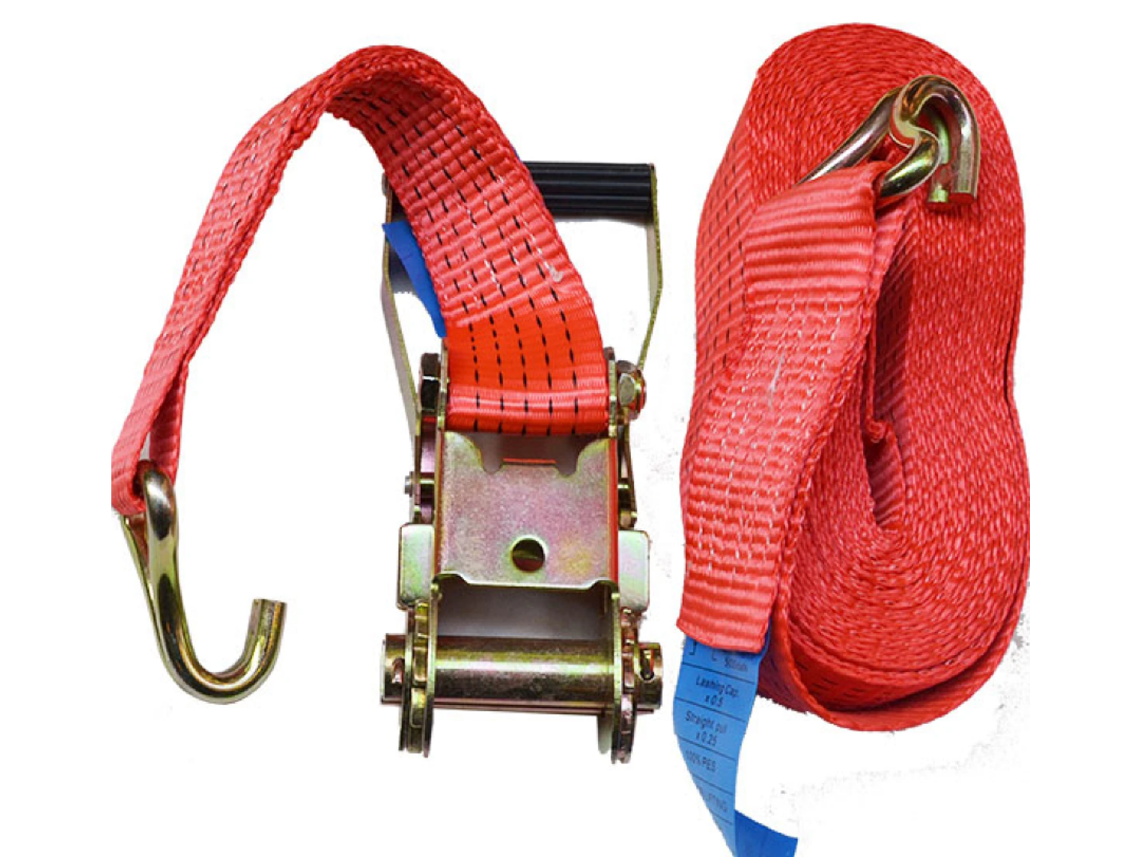 Surring med kraftig spændemekanisme, skralde og dobbelte J-kroge. Godkendelse EN 12195-2.