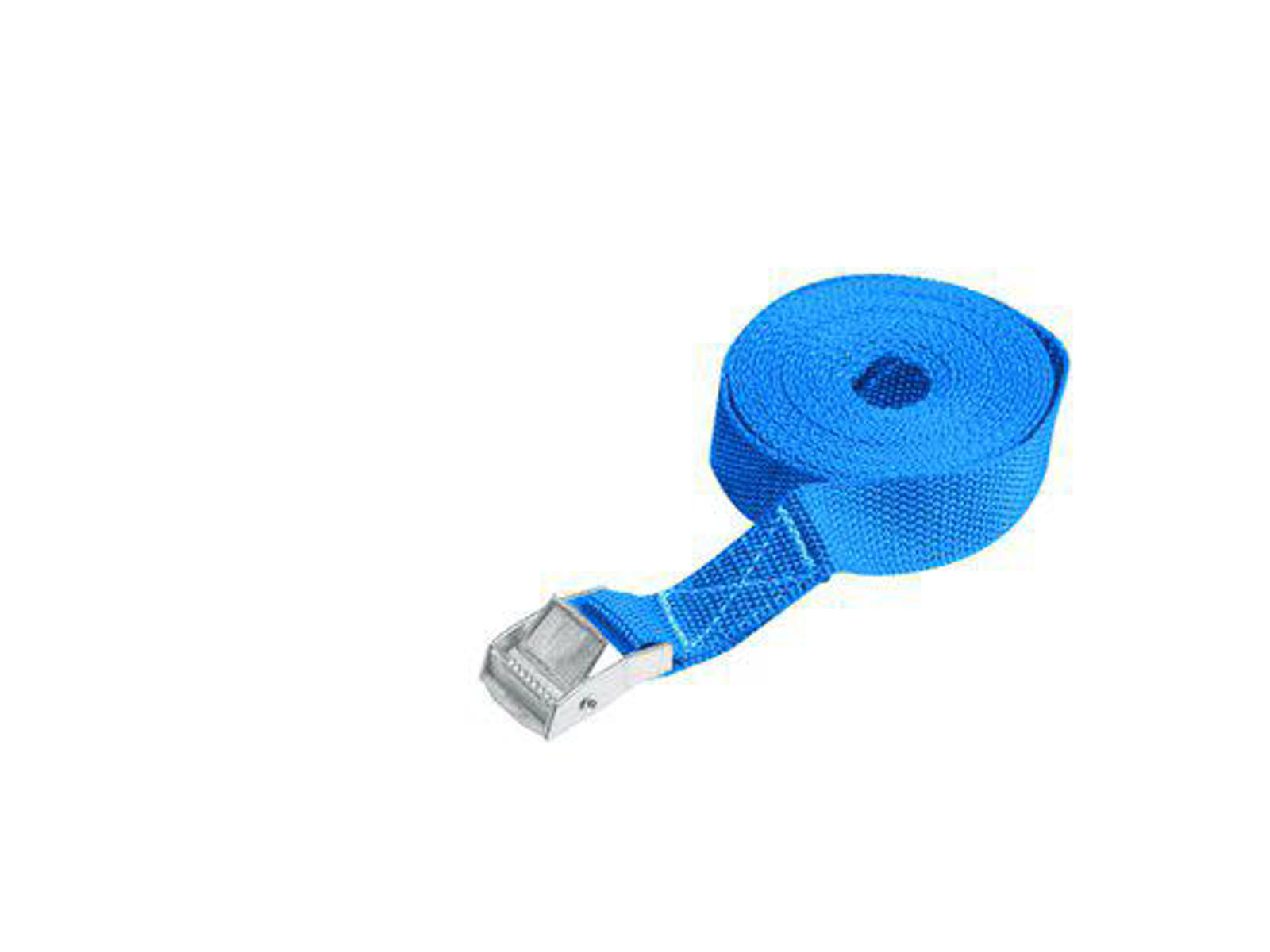 Surring med klaplås til hurtig og nem surring af mindre gods på tagbøjler, paller etc. Fremstillet af 25 mm polyesterrem.