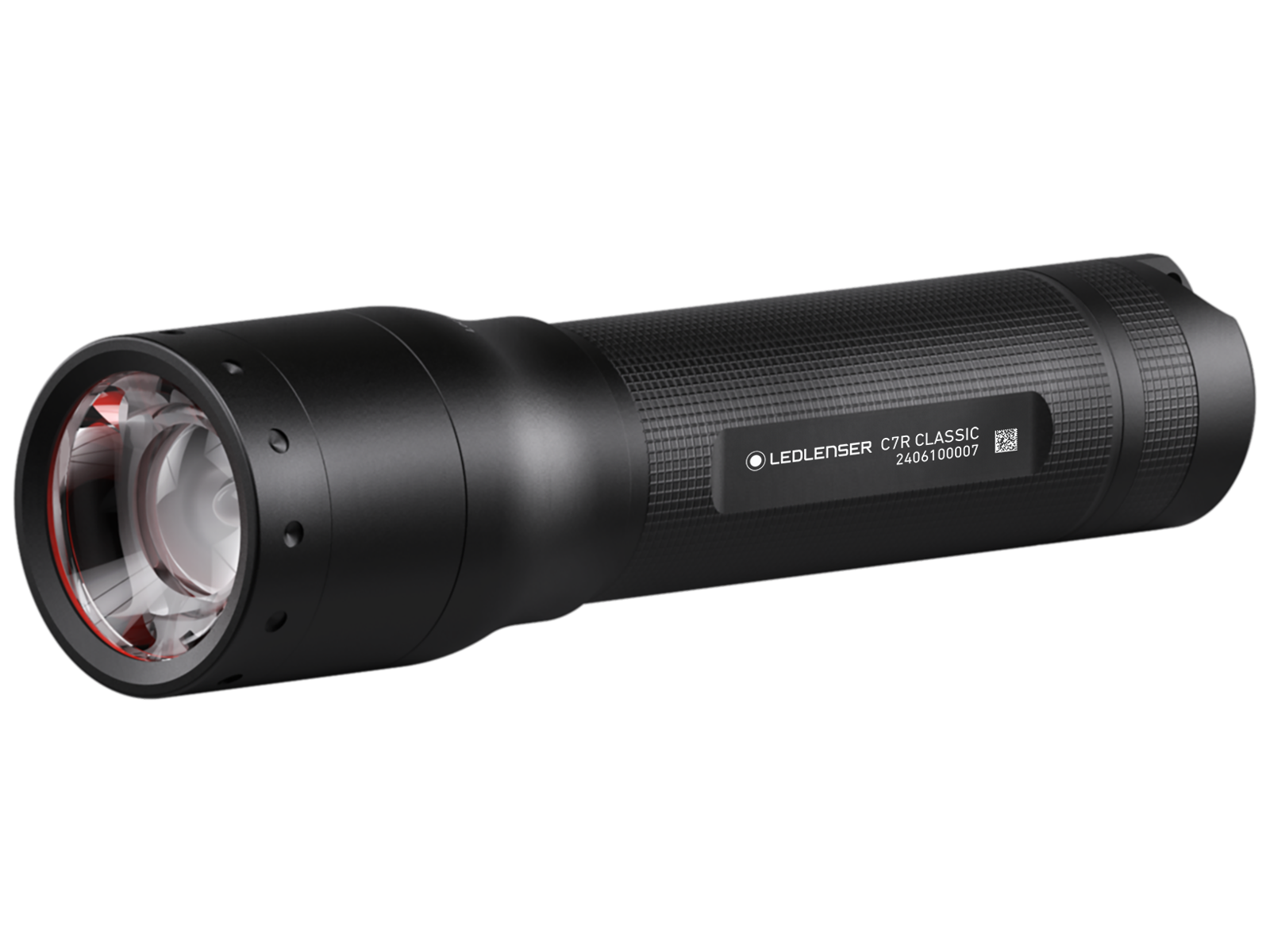 C7R Classic håndlygte med op til 1.000 lm lysstrøm og op til 210 mtr. rækkevidde trods sin handy størrelse. Nem justering af lyssøjlen med én hånd - Rapid Focus. 3 lysstyrkeindstillinger Power/Mid power/Low power 1.000/250/20 lm. Driftstid op til 40 timer på én opladning. Opladestatusindikator: rød - oplader, grøn - fuldt opladet. Leveres inkl. genopladeligt batteri, opladningssystem og håndledsrem.
