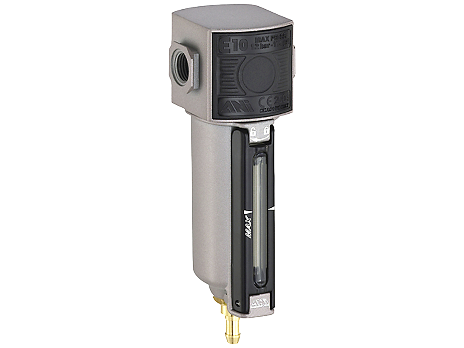 Kompakt vand- og olieudskiller med sprængkappe. Filtrerer vand og partikler fra luften og forlænger værktøjets levetid. Velegnet til modulopbygning. 50MY filter og semi-automatisk aftapning af kondensvand. Leveres med gevindringe for valgfri reduktion til 3/8".