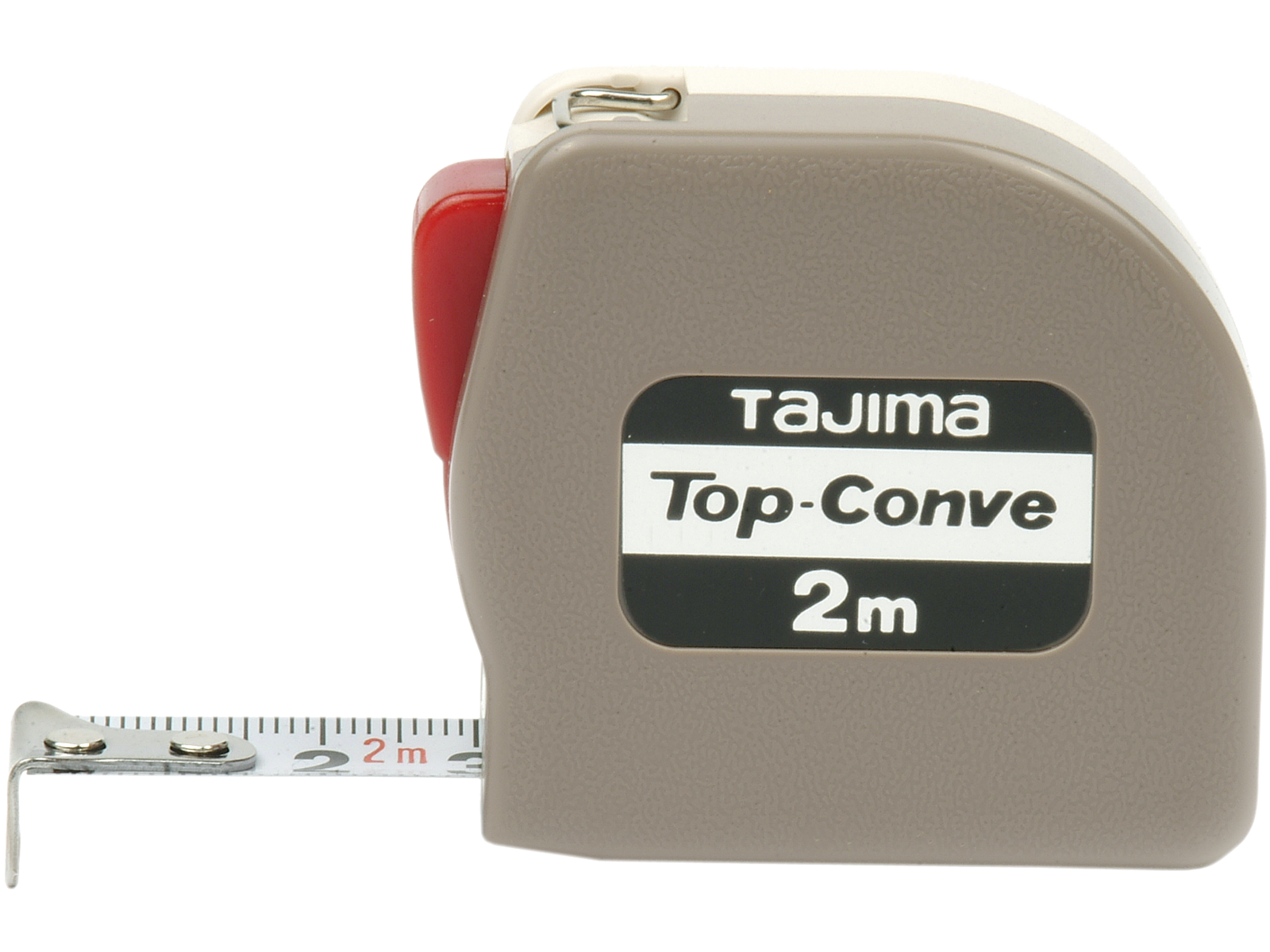 Tajima Top Conve båndmål på 2,0 mtr. Med tromlebremse som automatisk holder båndet efter udtræk. Hus i slagfast ABS plast, brun og beige model. 13 mm hvidt bånd. Godkendt efter JIS1.