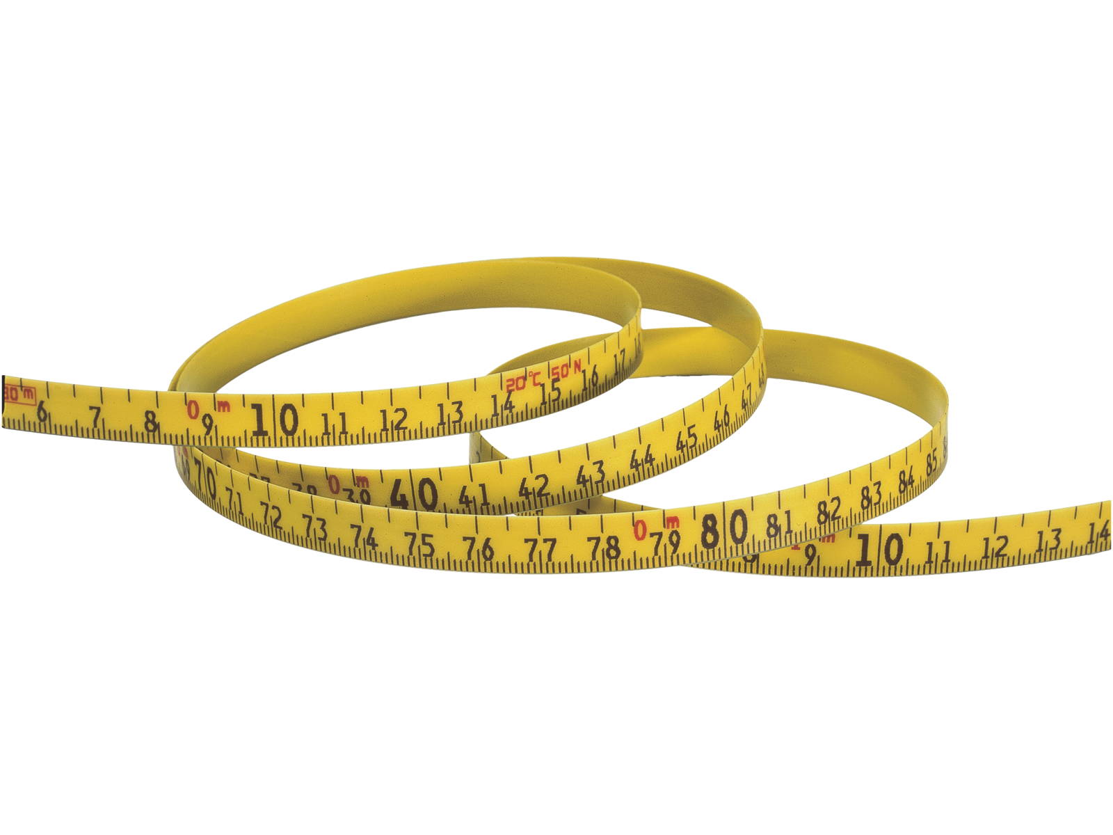Båndmål designet til montering på arbejdsbænke. Fremstillet i rustfrit stål med gradering i millimeter og båndbredde på 13 mm. Skala fra højre til venstre. Tåler kontakt med de fleste kemikalier og opløsningsmidler. Typegodkendt i henhold til EU Klasse II. Fås i flere længder.