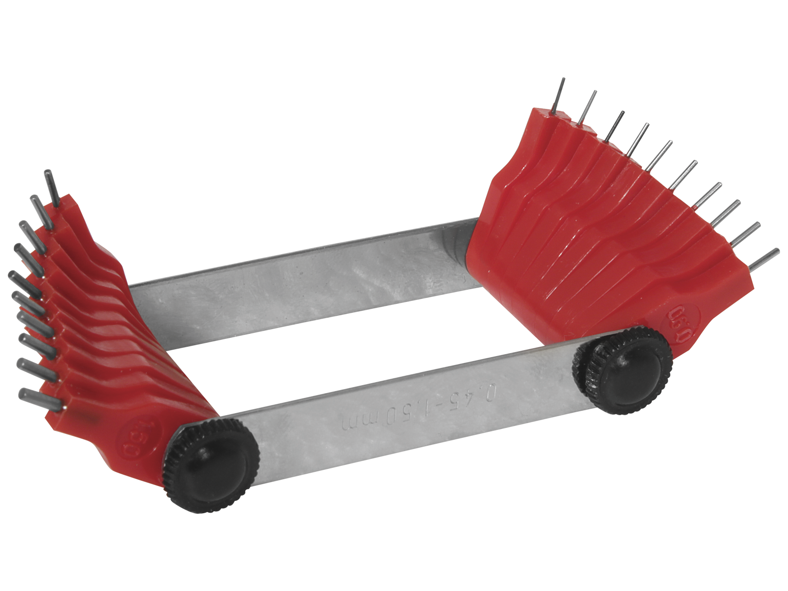 Dyselæresæt til bestemmelse af størrelsen på et hul eller en dyse. Måleområde 0,45-1,50 mm.