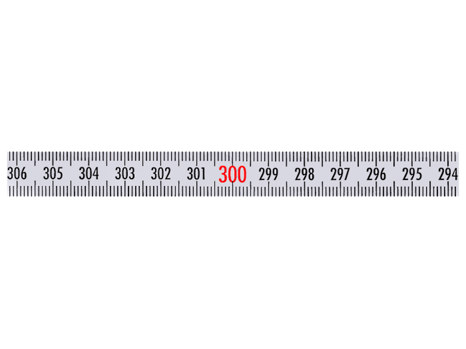 Selvklæbende målebånd i stål med dobbeltsidet klæbebånd. Kontinuerlig gradering af mm og cm. Sort graduering i top og bund. Løbende cm mærket med sorte tal. Løbende meter mærket med røde tal. Båndbredde 13 mm (enkelte varianter 10 mm).