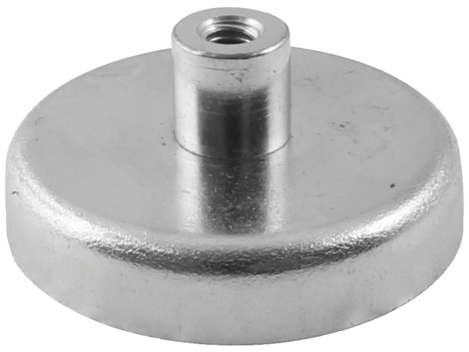 Populær ferrit pottemagnet i stålkappe med solid gevindbøsning som udvider anvendelsesmulighederne betragteligt inden for diverse holde- og gribefunktioner i industrien.