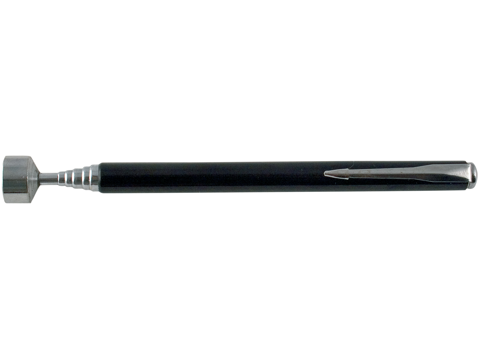 Kraftfuld teleskopmagnet med lommeclips. Praktisk til opsamling af magnetiske genstande som fx bolte og møtrikker på ufremkommelige steder. Fås i flere varianter.