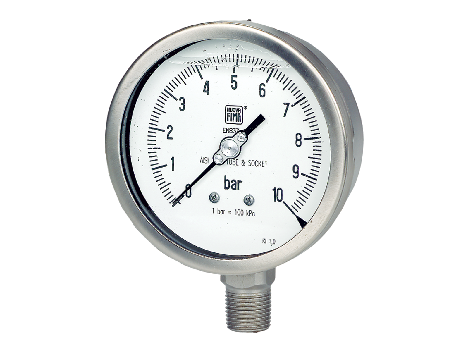 Nuova Fima rustfrit manometer er velegnet til alle industrielle applikationer, f.eks. pumper, pressere, dieselmotorer og andre typer maskiner, hvor der forekommer pulsationer og/eller vibrationer. Vores manometer er designet til at kunne måle under vanskelige betingelser. Den høje kvalitet sikrer en nøjagtig måling og en god langtidsstabilitet.
