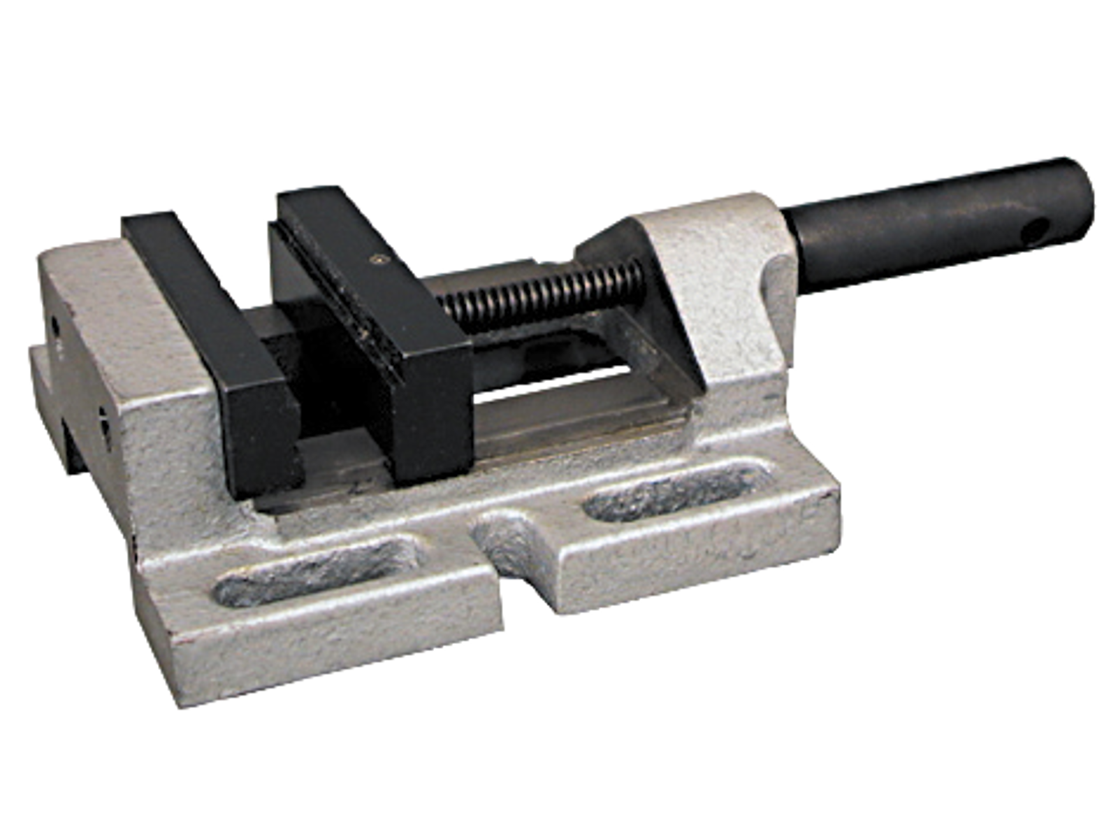 Light-duty skruestik til let brug fx på mindre boremaskiner. Kan anvendes i både vandret og lodret position. Kæberne er forsynet med anlægsflader til opspænding af tynde emner samt tre lodrette prismespor. Tværpind medfølger. Konstant længde, spindel drejer indvendigt i håndtag.