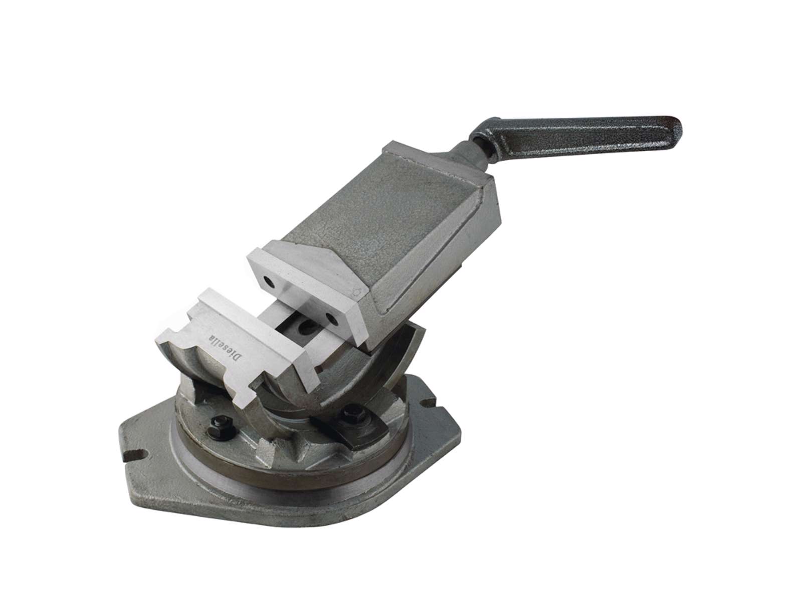 Kipbar maskinskruestik med drejeskive. Skala på drejeskive og i vipperetningen. Model med hærdede og slebne bakker. Fås i flere varianter.