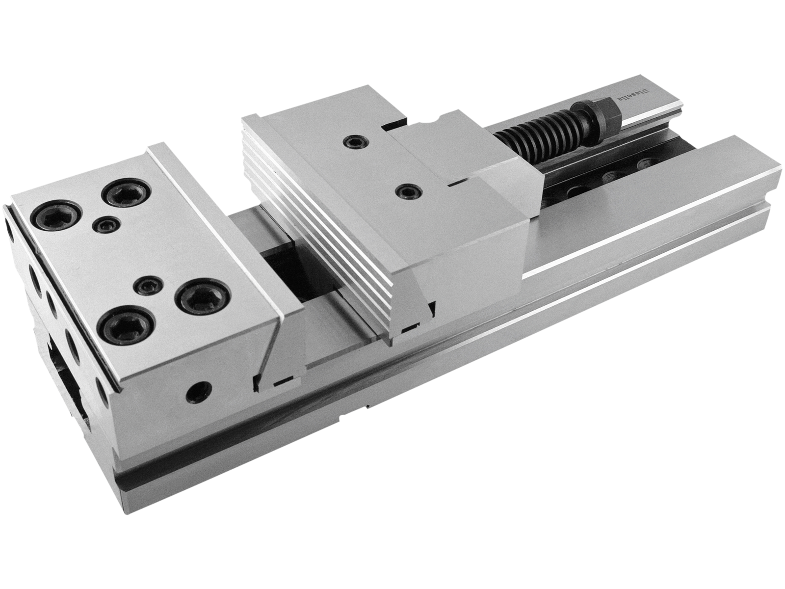 Præcisionsskruestik til fræseopgaver på konventionelle og styrede bearbejdningsmaskiner. Hurtig positionering af bevægelig bakke og kort spindel til fastspænding af emner. Skruestikken har høj gentagelsesnøjagtighed af spændeposition. Ekstra gevindhuller til kundespecifikke løsninger. Fremstillet af højtlegeret kvalitetsstål (20Cr.Mn.Ti.) med overfladehårdhed 58-68 HRC med en hærdedybe på 0,8-1,2 mm. Leveres inkl. spændejern, notsten, arbejdsstop, spænde- og stiftnøgle. Fås i mange varianter.