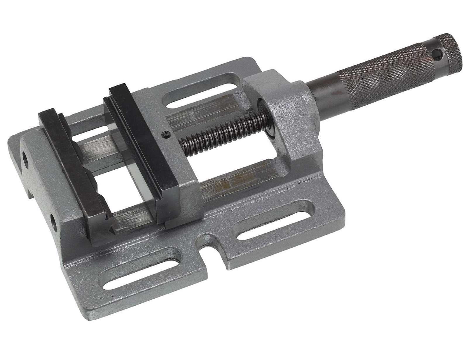 Af støbejern. Med ikke-hærdede stålbakker med spor i oversiden, hvoraf den faste er prismatisk.