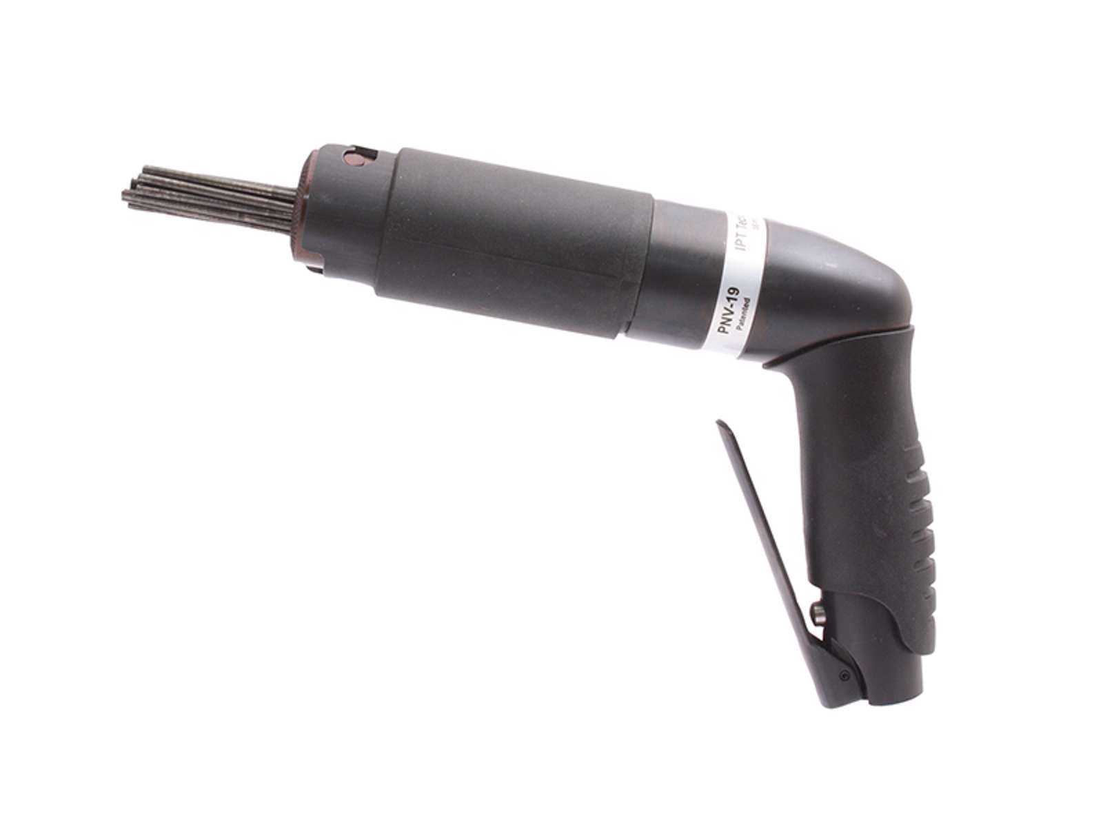 Lyd- og vibrationsdæmpet nålehammer med antivibrationssystem. Meget stærk og med ergonomisk design. Velegnet til afrensning, afkalkning mm. Let udskiftelige 140 mm nåle. Min. slangetilslutning 3/8". Maks. arbejdstryk 6,5 bar. 6.600 slag pr. minut. 19 stk. nåle a' 3 mm. 1/4" tilslutning.