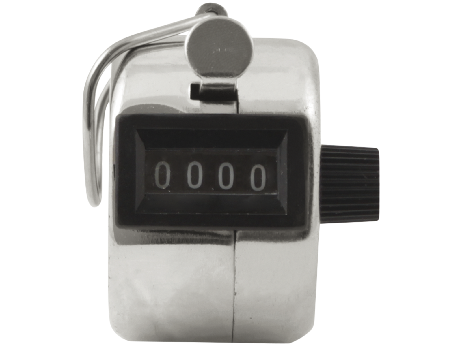 Håndtæller med fire cifre. Tælleren er fremstillet af metal med reset-drejehjul og fingerring. Tæller fra 0-9.999 og kan nulstilles. Ideel til fx manuel optælling af enheder, personer eller lignende.