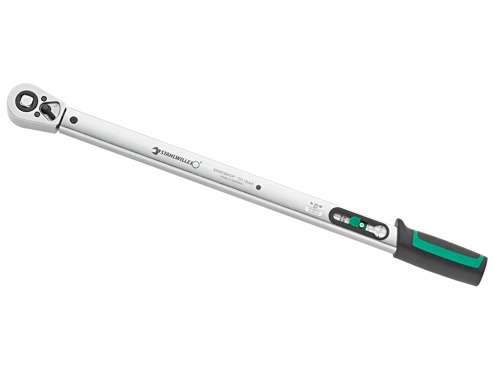 Standard Manoskop Quick udløsende momentnøgle med fast indbygget skralde. Det er ikke nødvendigt med tilbagestilling til 0, da måleelementet kun belastes ved tilspænding. Lynindstilling med nemt betjenbar klemmearm i grebet. Ergonomisk udformet, skridsikkert justeringselement med fordybning til tommelfingeren. Integreret lup i aflæsningsvinduet. Forbedret håndgreb for ubesværet arbejde. Dobbelt-Stop-Signal. Dobbeltskala Nm/ft·lb. Videre belastning efter udløsning eller belastninger mod funktionsretningen, fx ved fastsiddende bolte, har ikke indvirkning på udløsermekanismen, som således beskyttes mod beskadigelser. Beskytter all følsomme dele med det robuste stålrørshus. Kalibrering med perfectControl kalibreringsanordning nr. 7794 eller kalibreringsanlæg nr. 7706. I givet fald efterjustering uden demontage. Med certifikat DIN EN ISO 6789-2:2017. Visningsafvigelse ± 4 %.