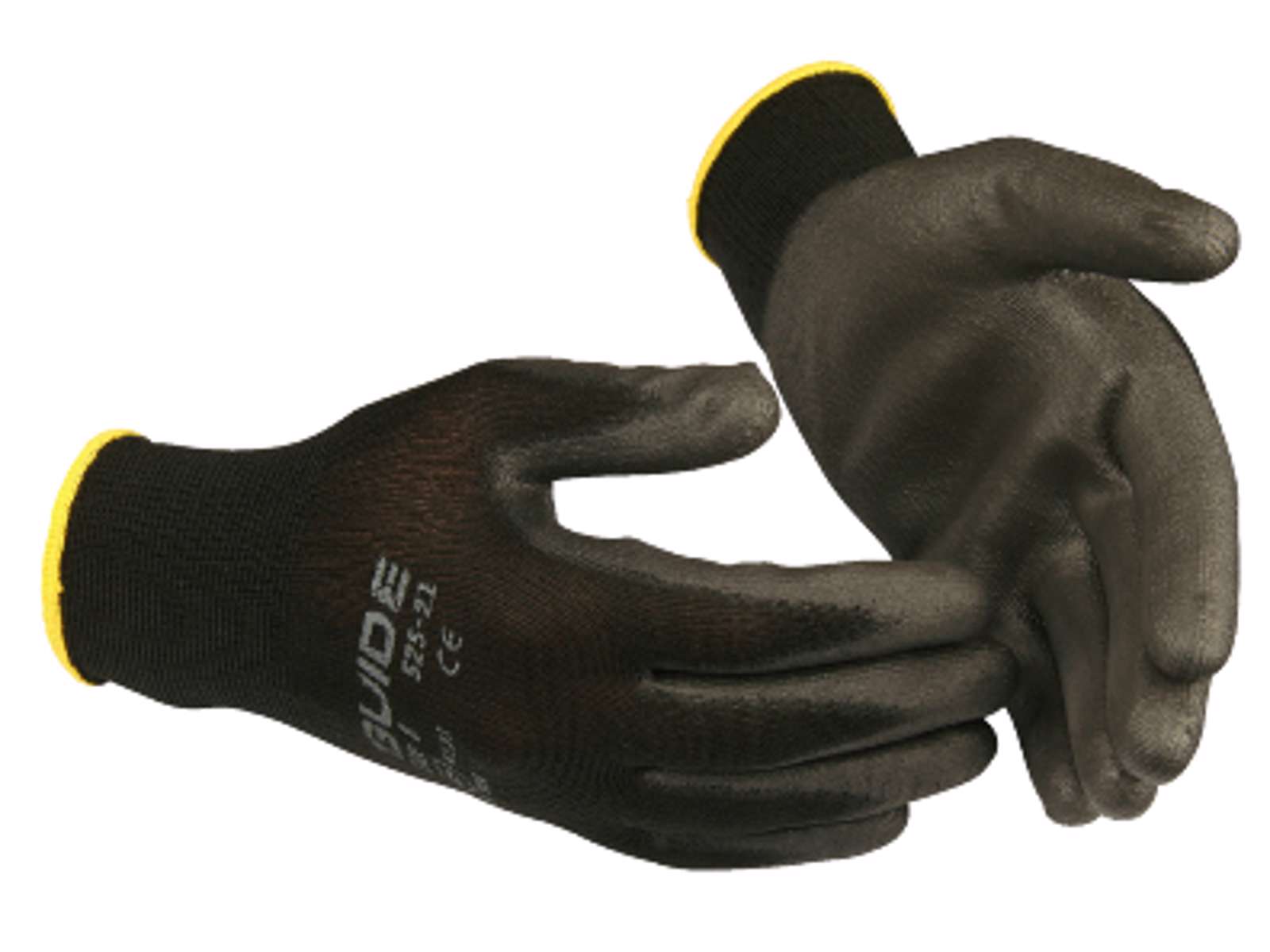 En smidig arbejdshandske i nylon, som gennem sin konstruktion er meget luftig og sval. Sømløst strikket for ekstra god fingerspidsfølelse. PU-dypningen i inderhånden giver godt greb og mekanisk beskyttelse. Farvemarkeringen ved kraven angiver størrelsen. Fremstillet af silikonefrie materialer.