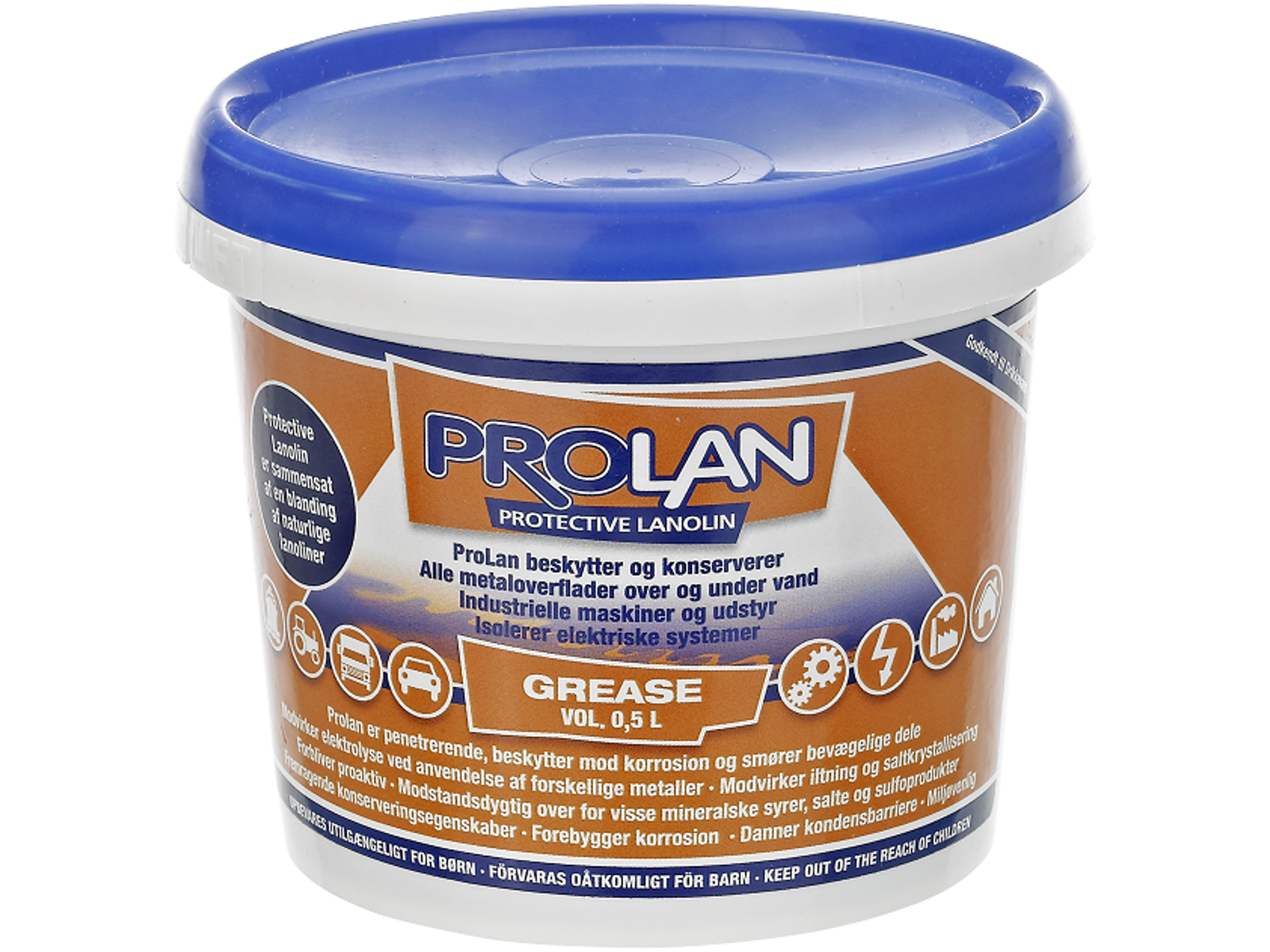 PROLAN GREASE er en ANTI-SEIZE montage pasta til industrielle samlinger, gevind og flanger, også i rustfrit stål. Kan også anvendes i særligt korrosive miljøer. Elektrisk adskillende til 70 kV og er derfor perfekt ved montage ved forskellige metaller i samlinger. Fødevaregodkendt, NSF klasse H1. Kan ikke anvendes sammen med EPDM gummi.