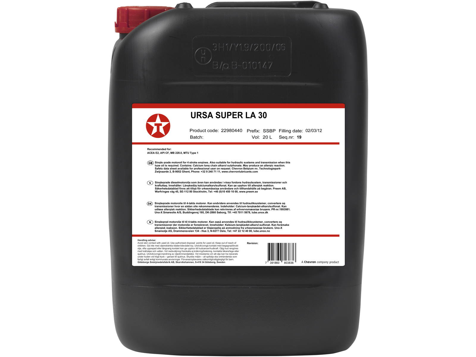 Motorolie Ursa Heavy Duty SAE 30 20ltr