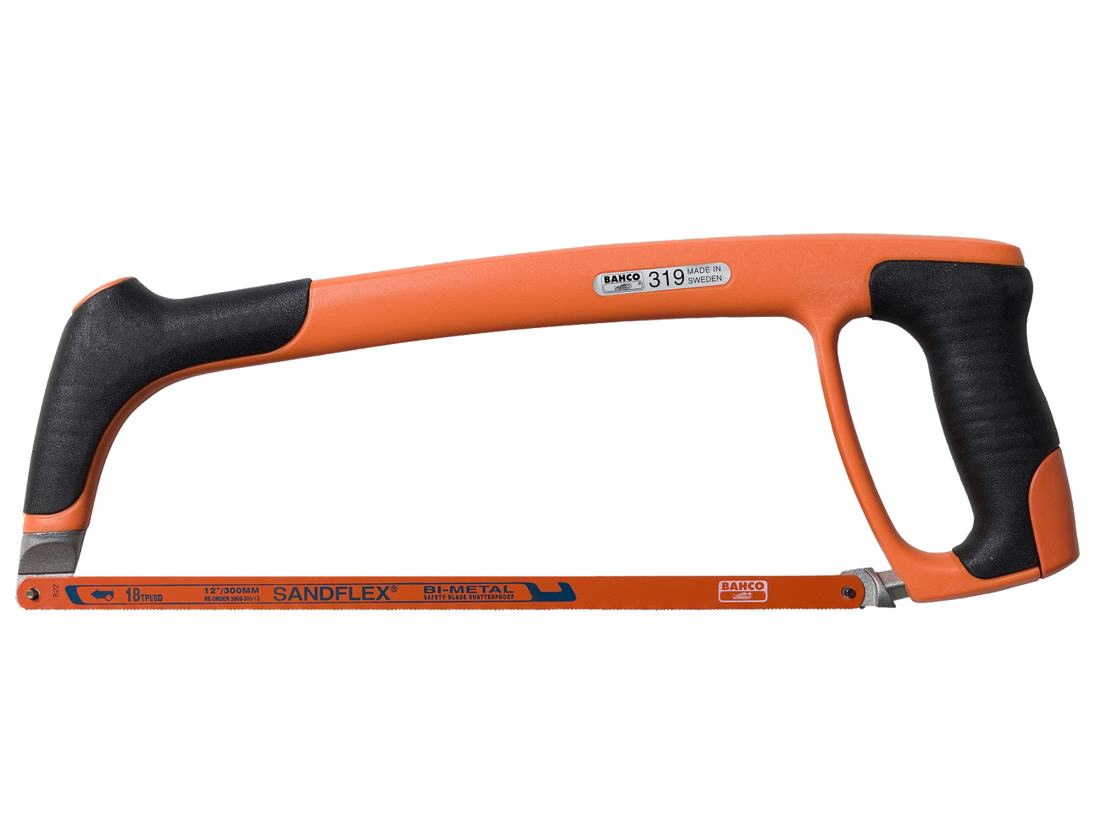 Professionel og unikånedstrygerbue med let, men stærk stålprofil. Komfortabelt gummibeklædt håndtag med tommelfingerplacering, som sikrer et solidt greb. Høj klingespænding på 100 kg giver præcise og lige snit. Klingen kan opspændes i en vinkel på 55°, opspændingsmekanismen er integreret i håndtaget. Leveres med Sandflex bimetalklinge 24 tpi.