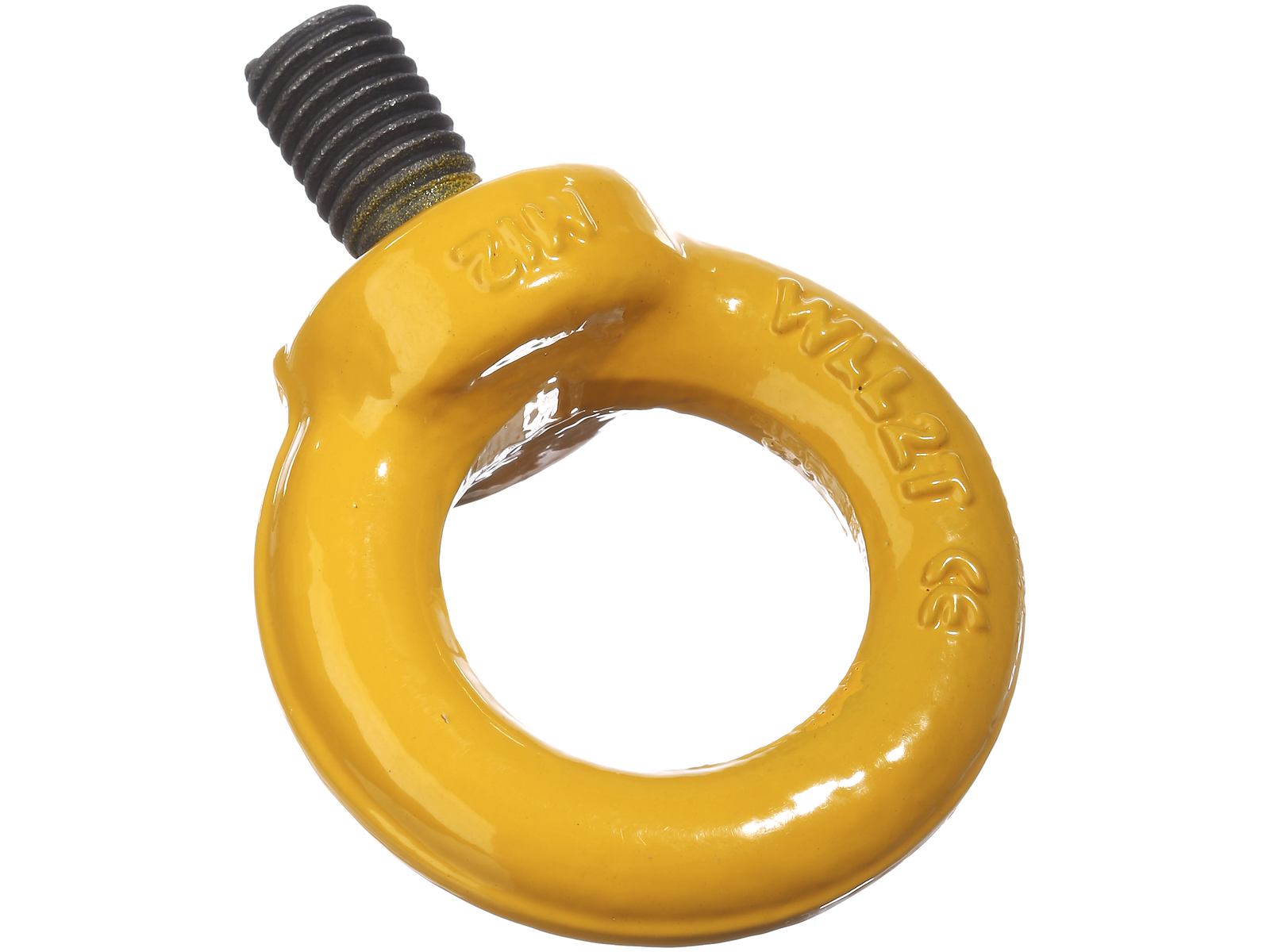 Gulmalet klasse 8 øjebolt. Godkendt til løft. Sikkerhedsfaktor 4:1.