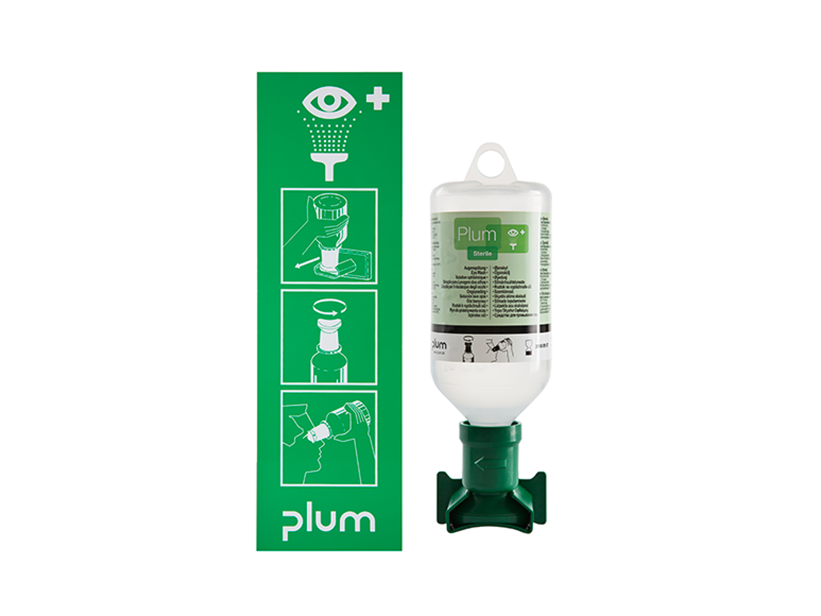 Øjenskyllestation til vægmontering. Inderholder 1 stk. 500 ml øjenskyller med 0,9 % steril natriumklorid. Skylletid ca. 5 min. Flaske med øjenkop og støvhætte. Løst piktogram med tydelig vejledning. Uåbnet holdbarhed 3 år.