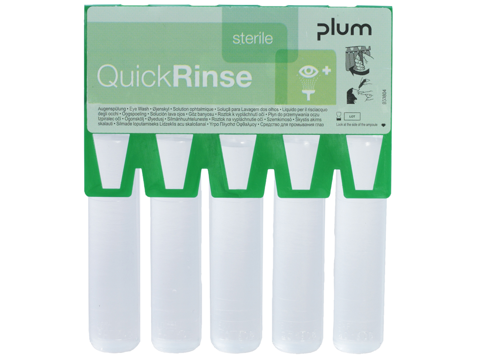 Sterile 20 ml ampuller med øjenskyllevæske til at skylle støv og snavs ud af øjet samt komfortskylning ved tørre, trætte og irriterede øjne. Indeholder 0,9 % natriumklorid, svarende til det naturlige saltindhold i øjnene. Uåbnet er den sterile væske holdbar i 3 år. Kan anvendes som refill i QuickSafe førstehjælpsstation, QuickFix&Rinse plasterdispenser eller løst.
