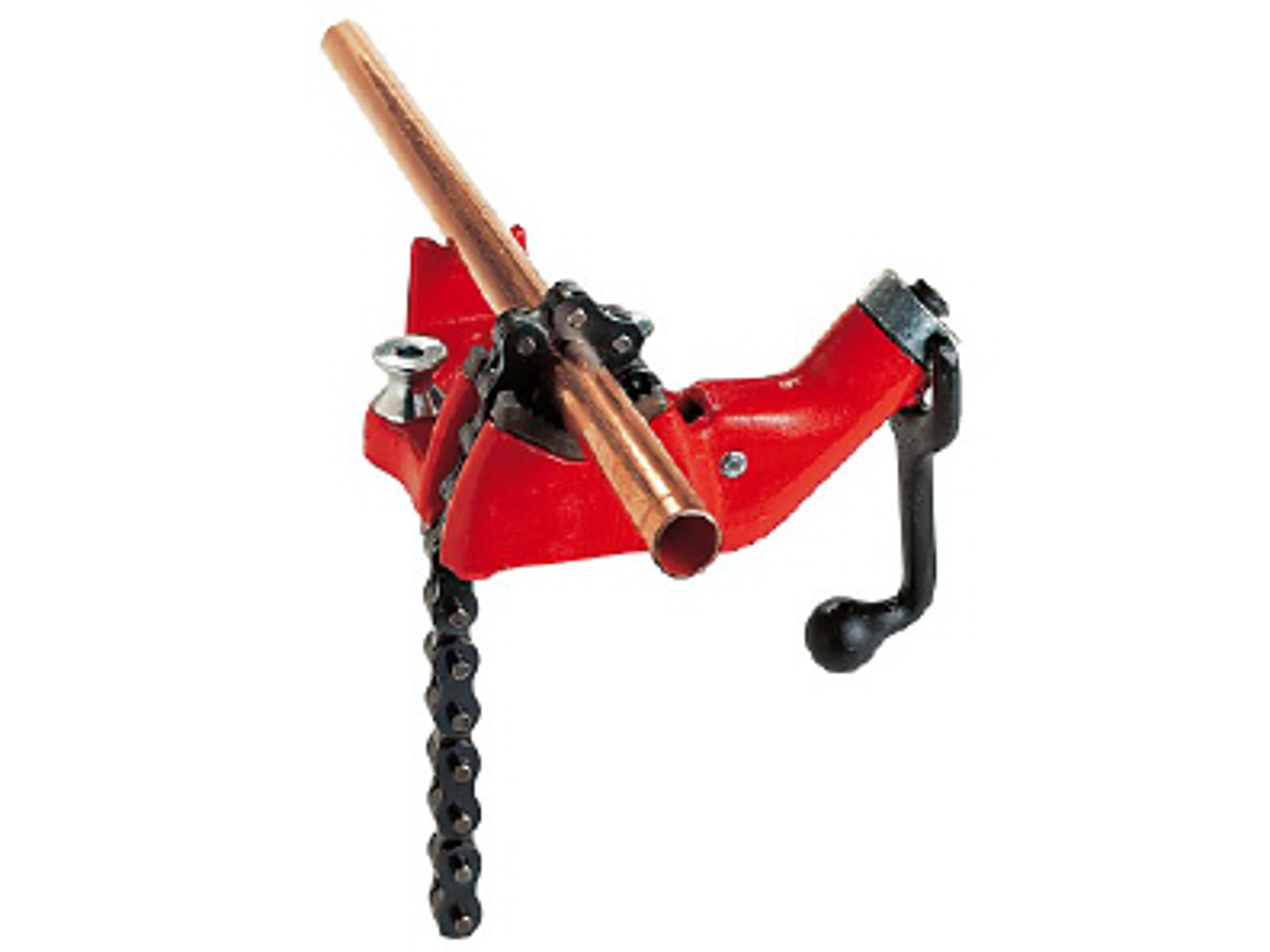 Kæderørholder med topskrue. Håndsving er forankret i base. Robust støbejernsbase har praktisk rørstøtte og bukker. De tandløse kæber er belagt med neopren, så ridser undgås. Fås i flere varianter.