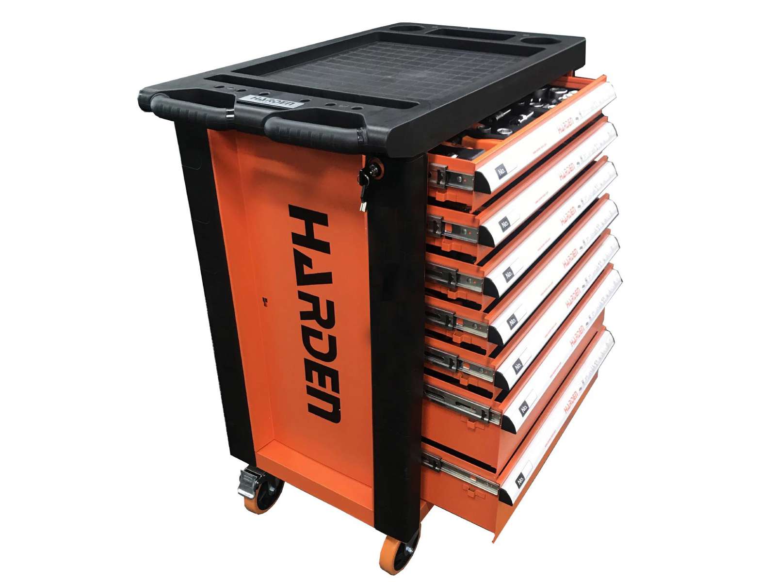 Den har syv skuffer, hvoraf fire er fyldt med værktøj, som dækker de mest almindelige behov på værkstedet eller bilværkstedet.