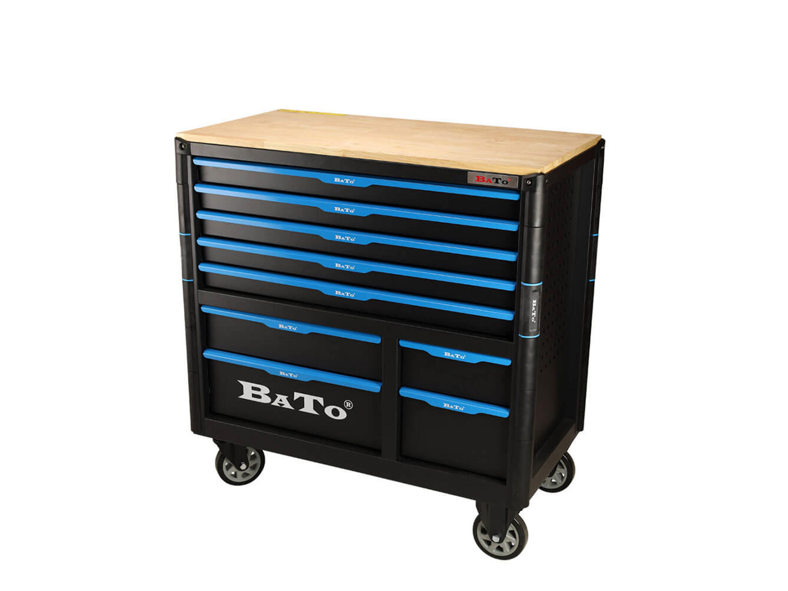 5 store lange skuffer. 2 mellem skuffer. 2 små skuffer. 9 skuffer i alt med træbordplade.