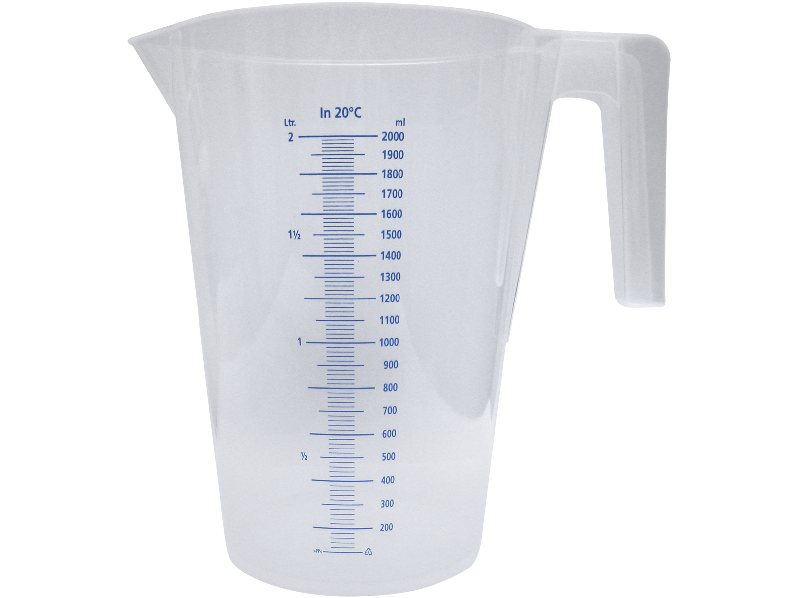 Målebæger/litermål med ml deling og hank. Kan anvendes til olie, vand, frostvæske, sprinklervæske, PH-neutrale væsker, diesel og petroleum. Fremstillet i levnedsmiddelgodkendt, transparent PP.