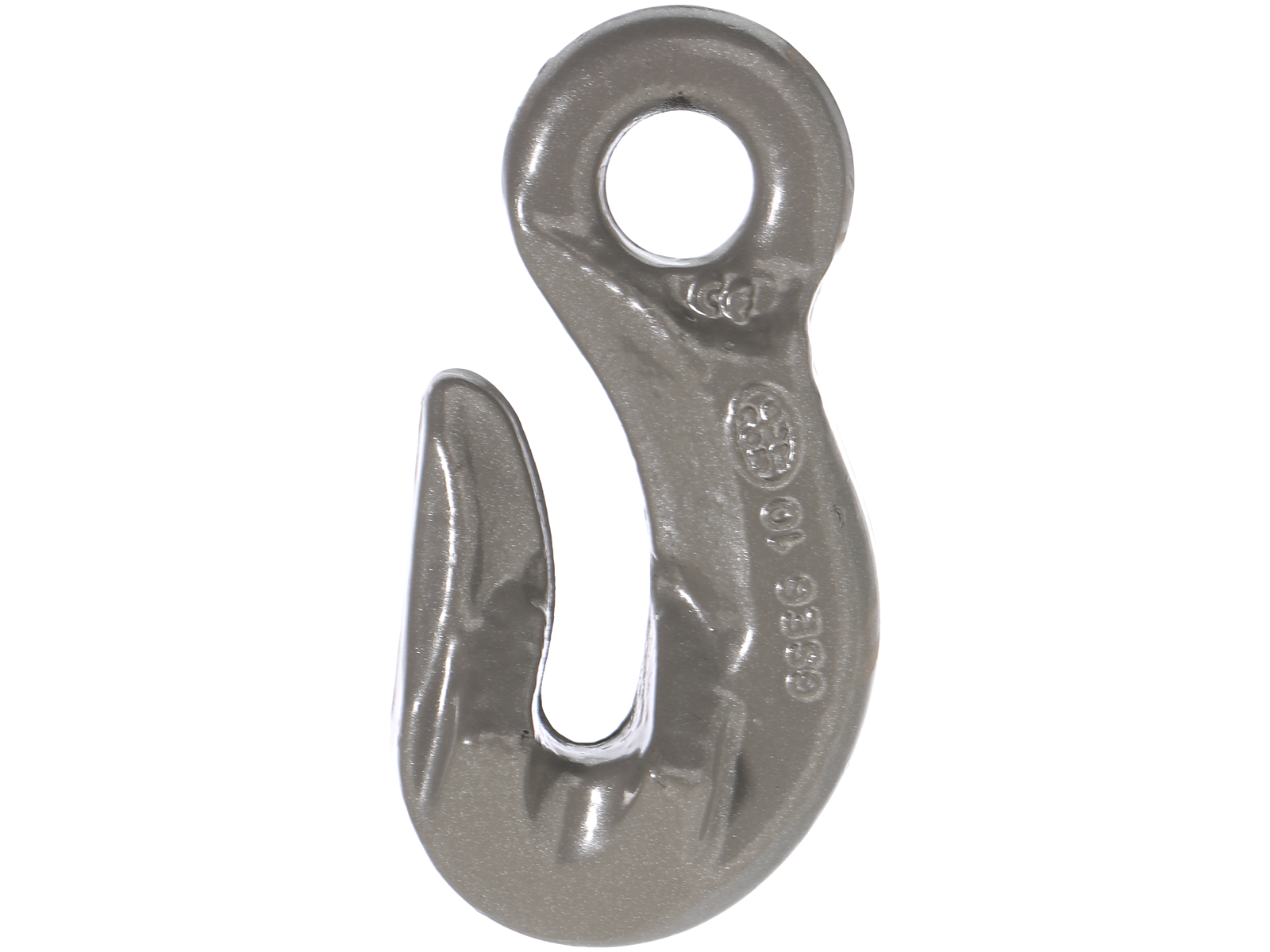 Gråmalet klasse 10 øjeopkorterkrog til midlertidig opkortning af kæde på kædesling. Fås i flere varianter.
